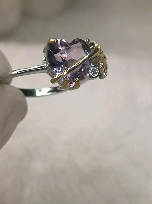 Amethyst Herz Edelstein, Kupfer Ring verstellbar
