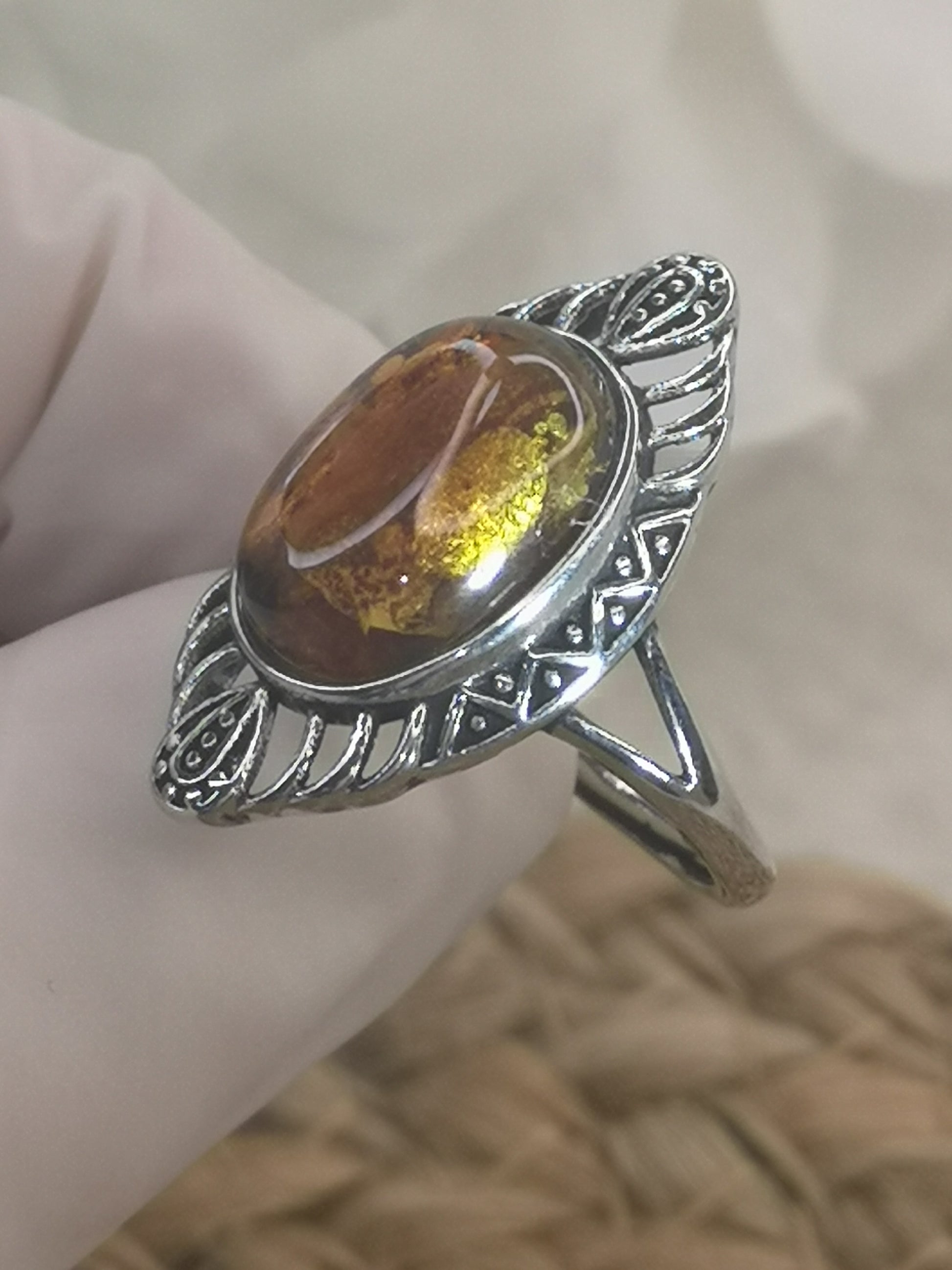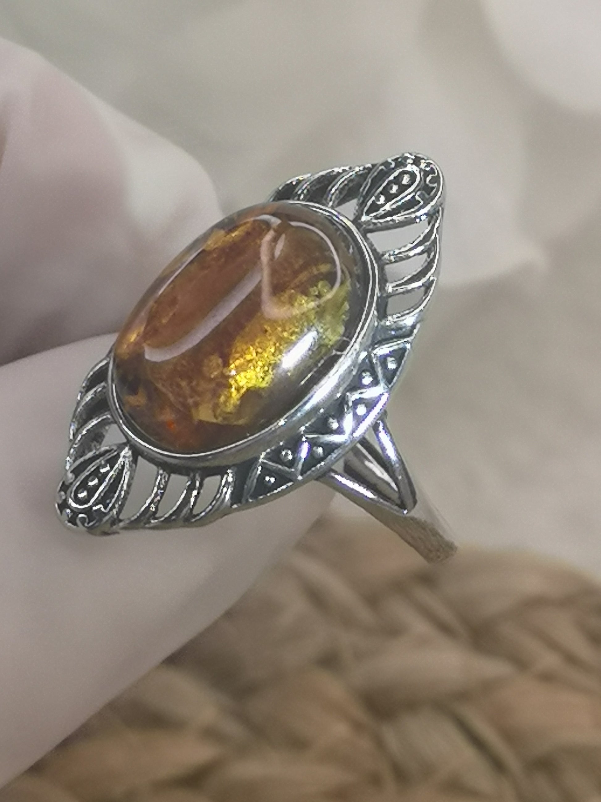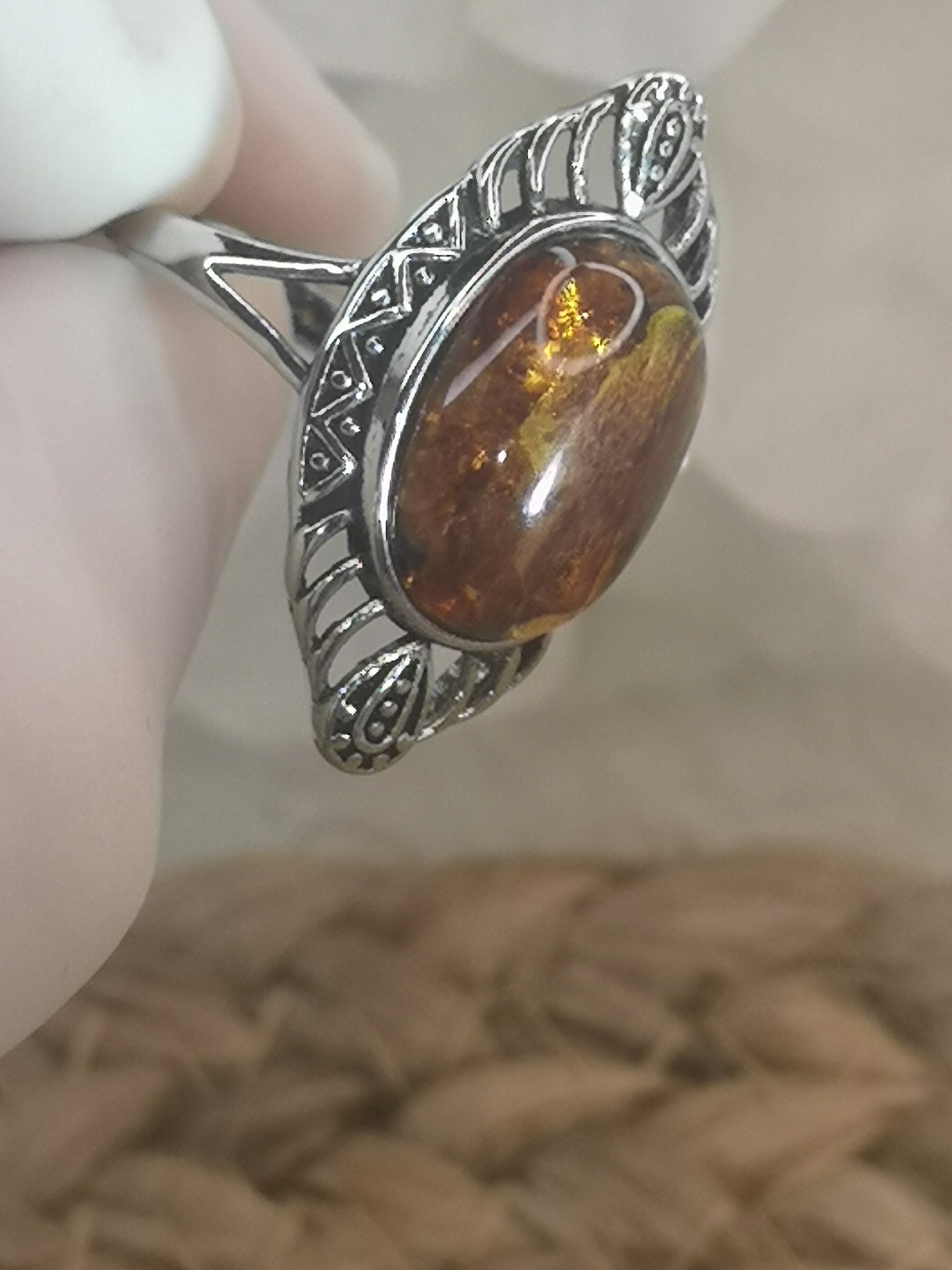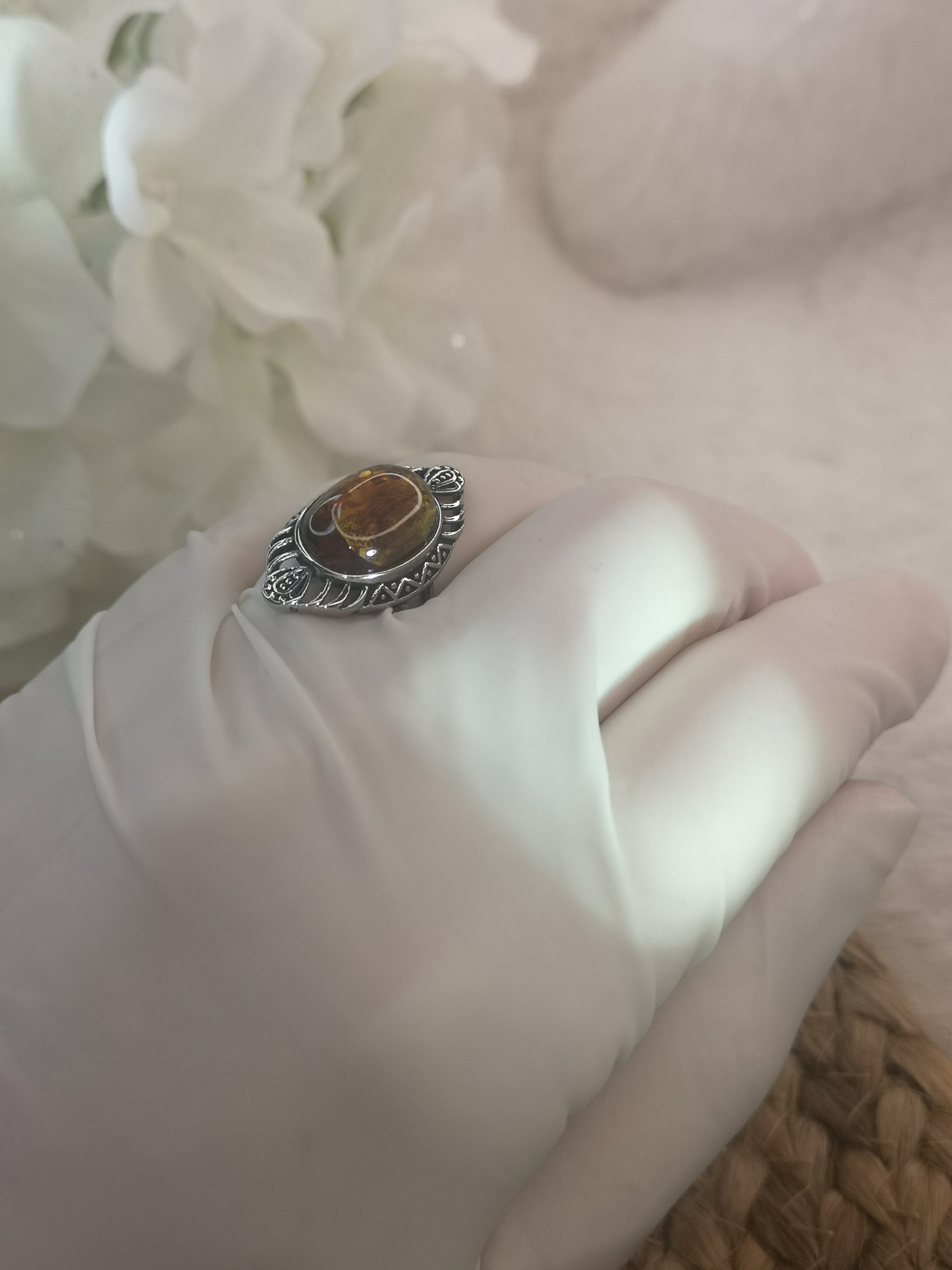 Blue Amber Bernstein Edelstein 925 Silber Ring Crystal Schmuck