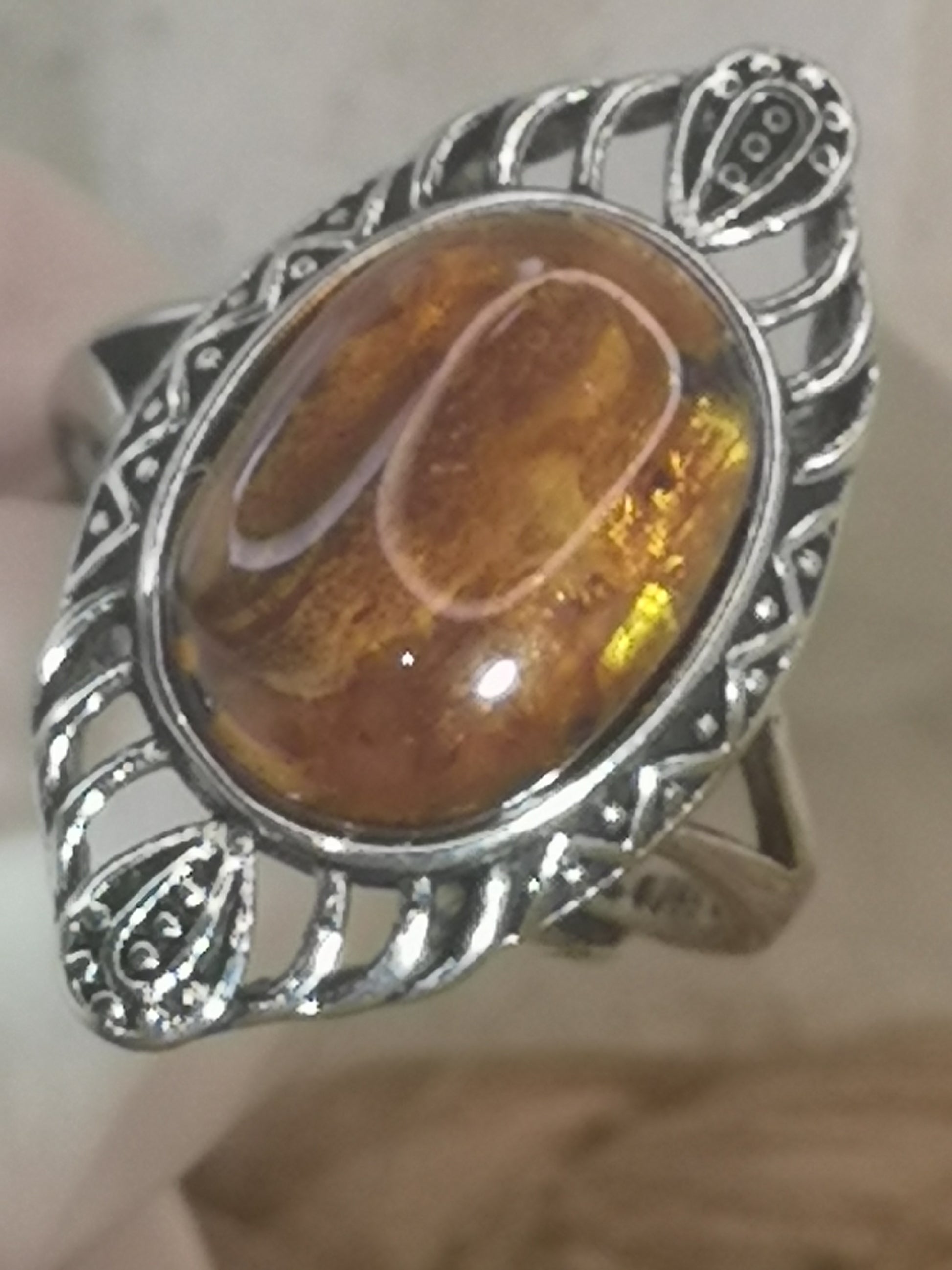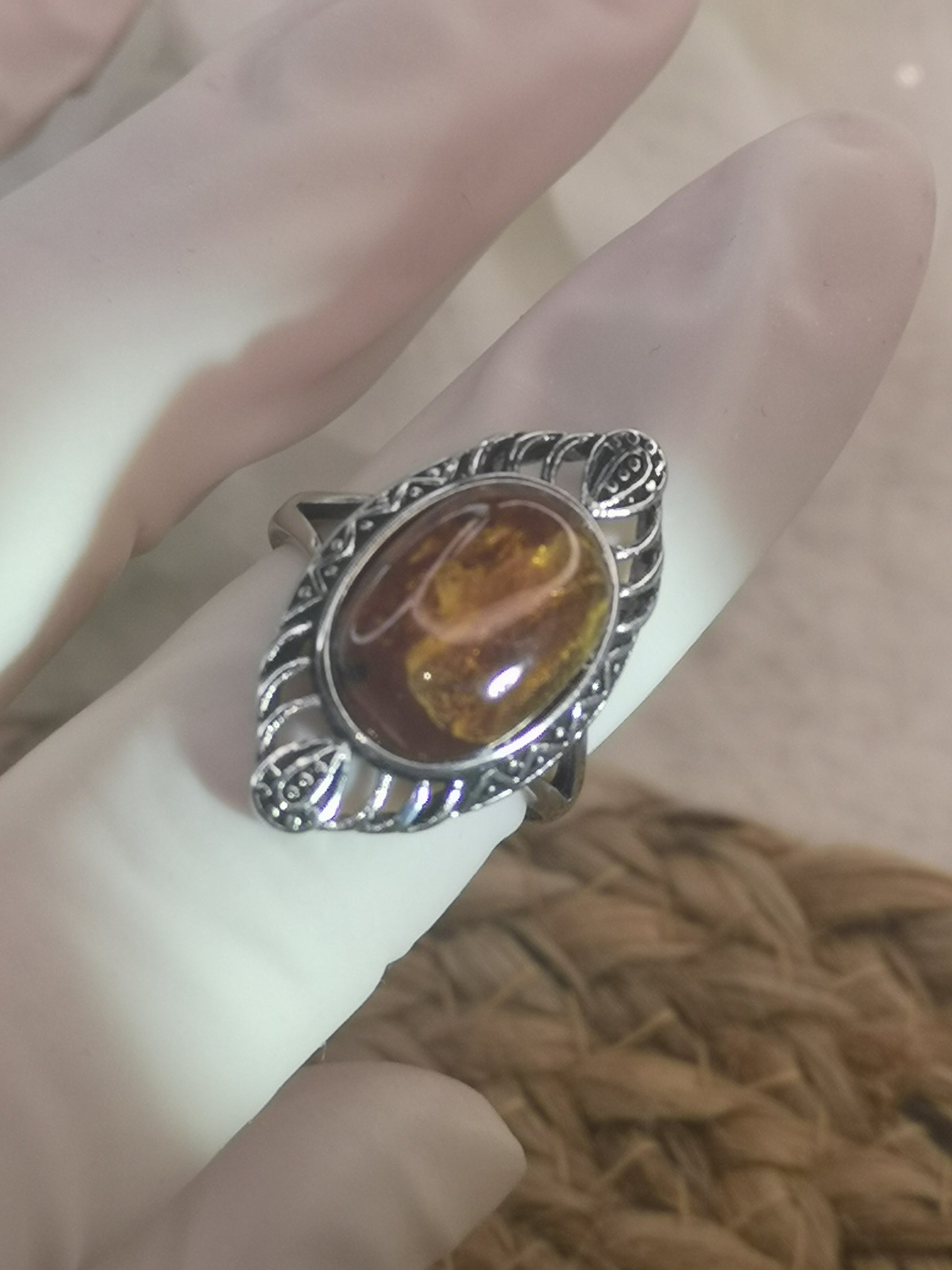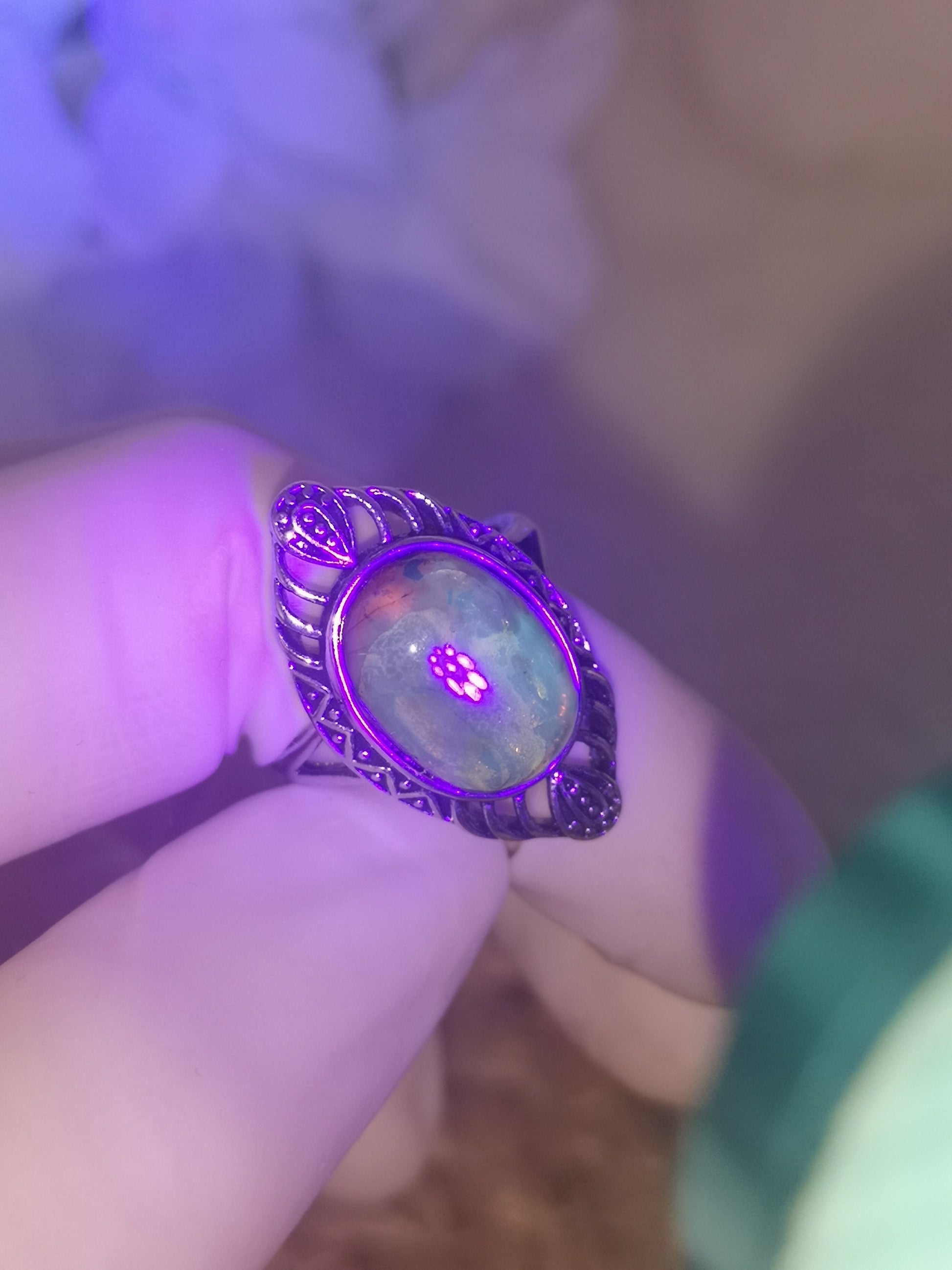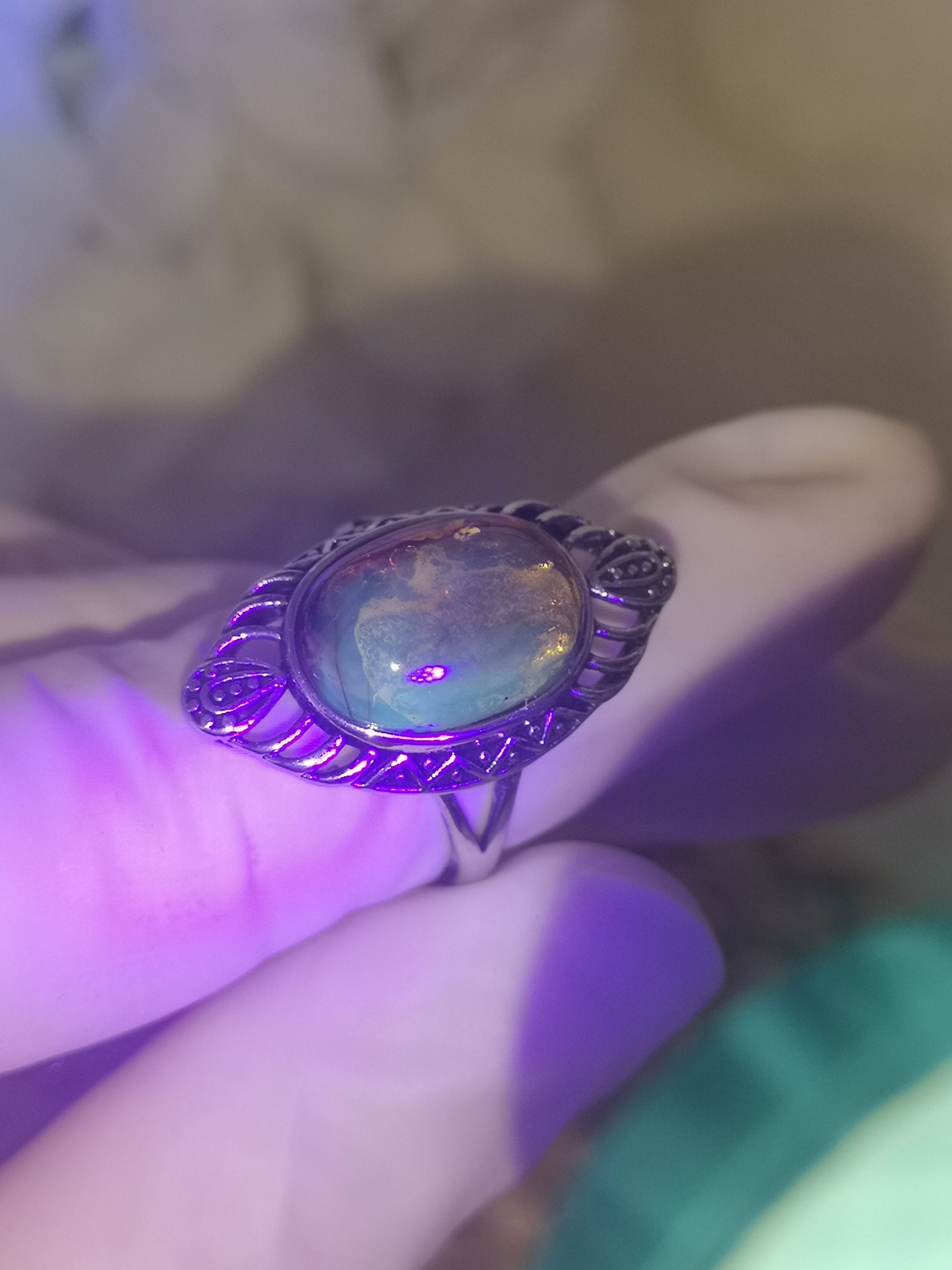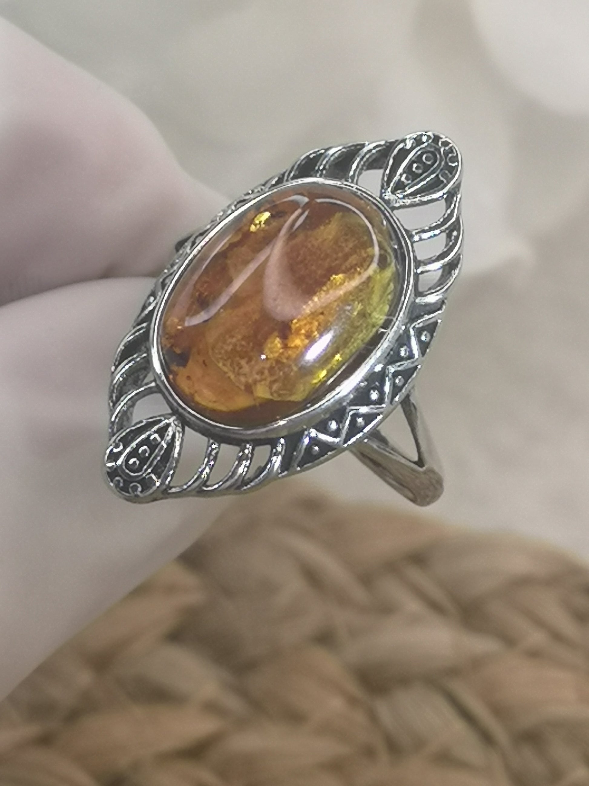 Blue Amber Bernstein Edelstein 925 Silber Ring Crystal Schmuck