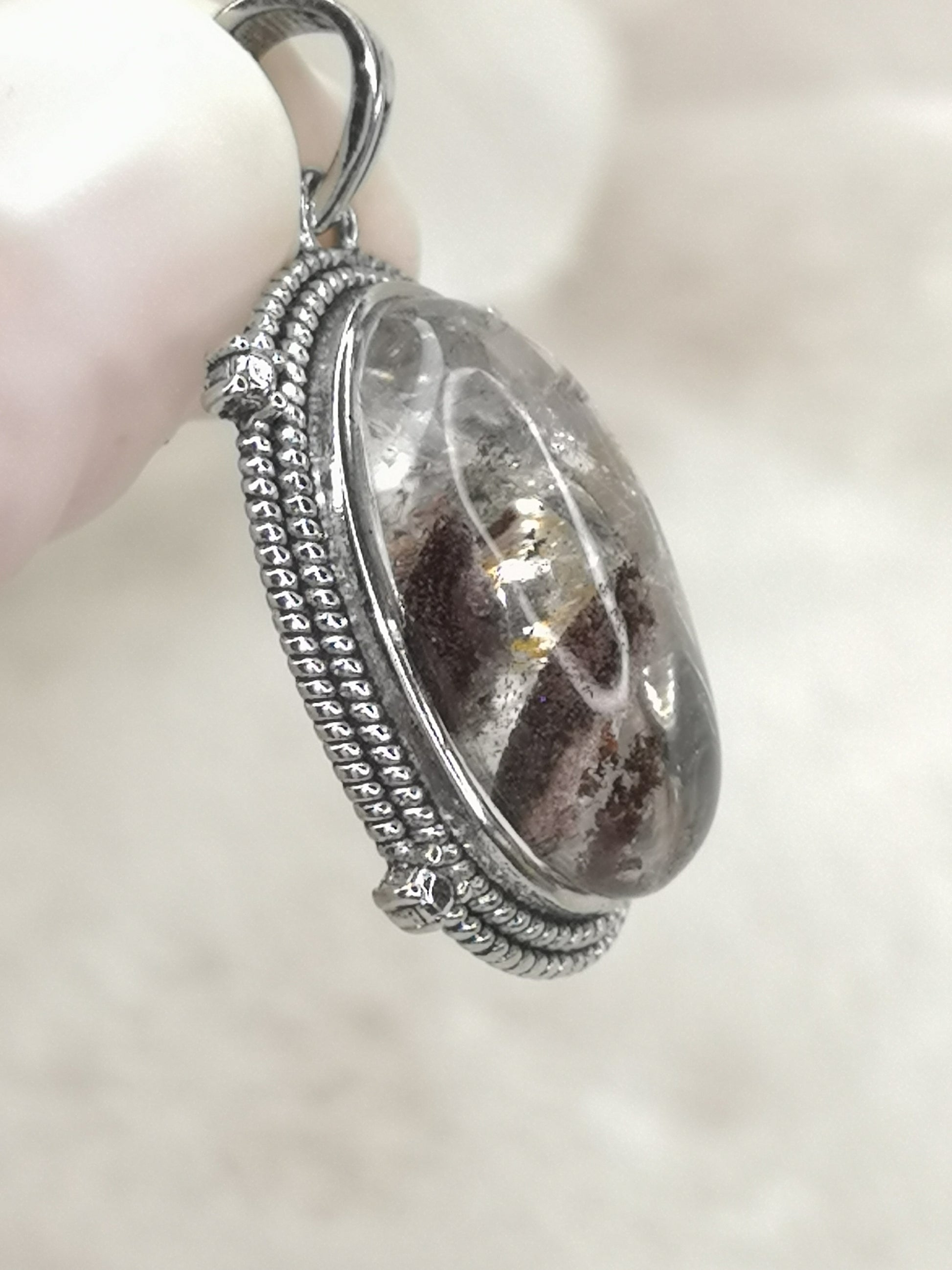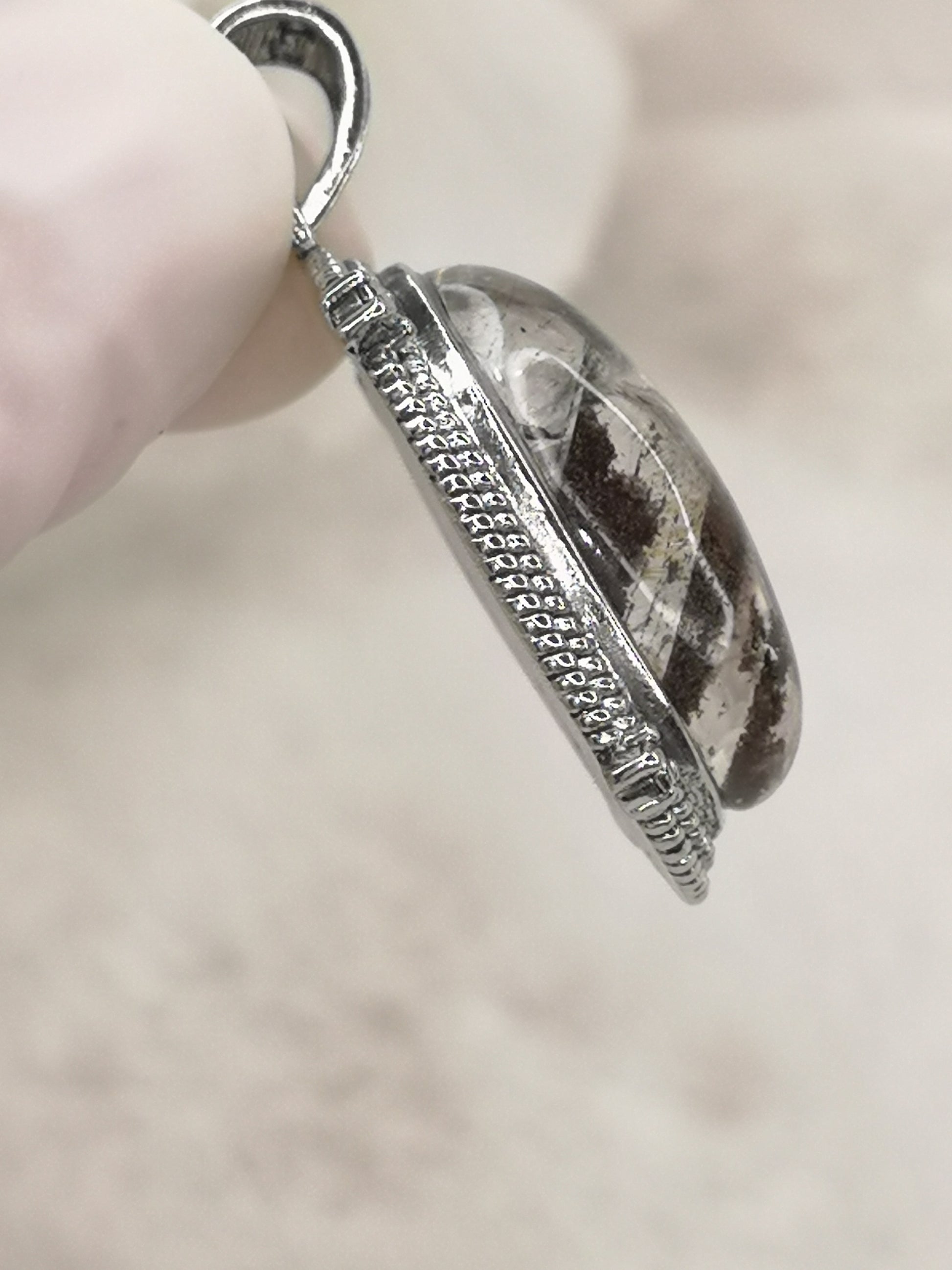 Gartenquartz Edelstein mit Phantomen, Kupfer Ketten Anhänger