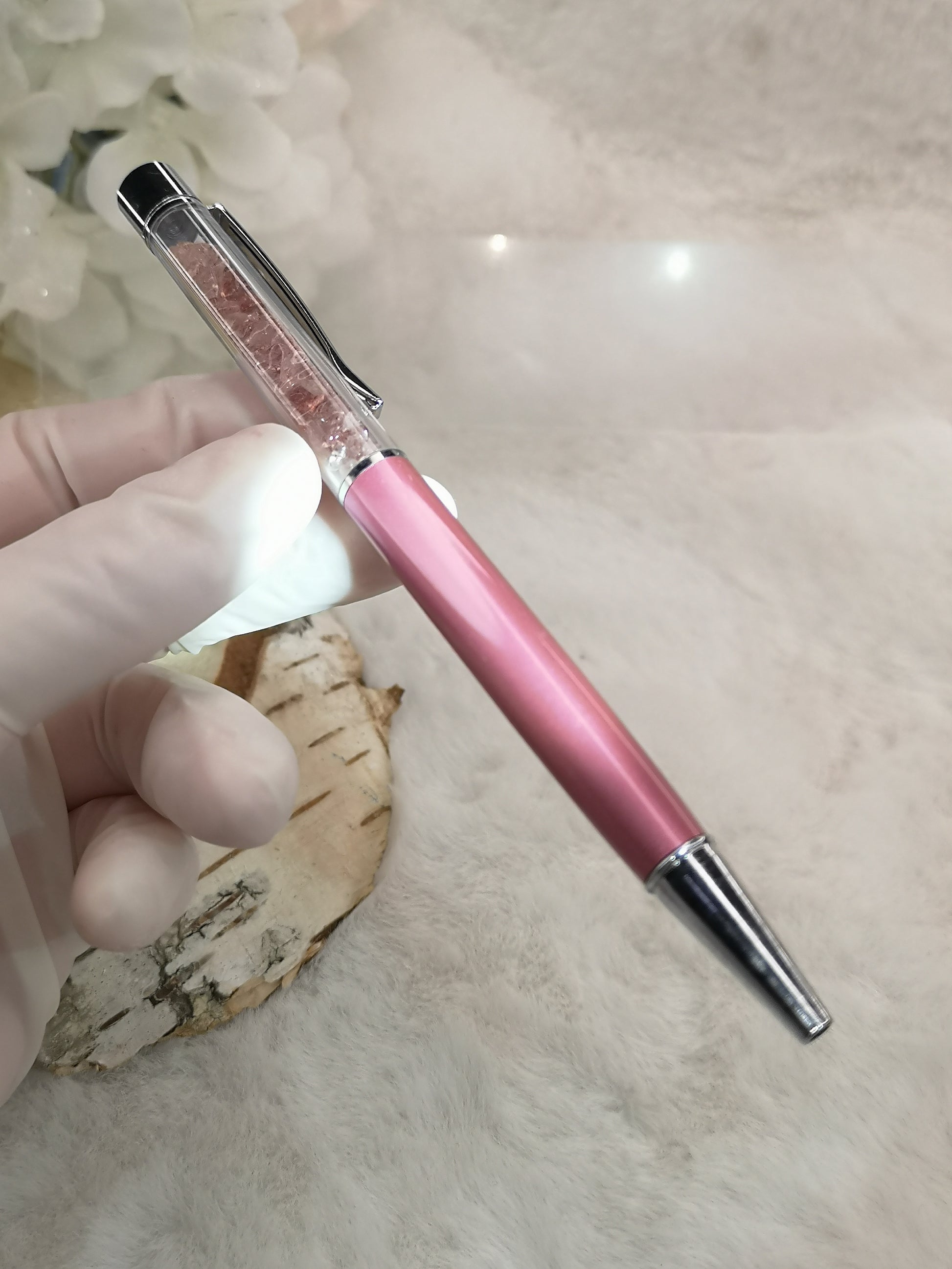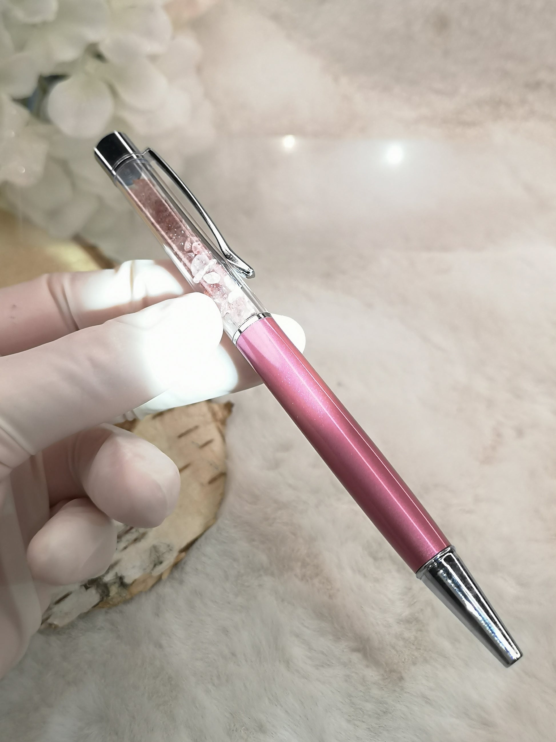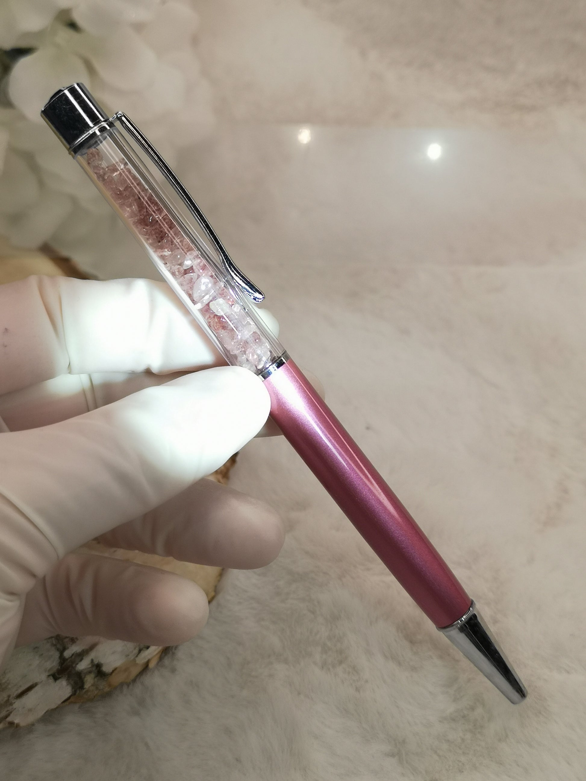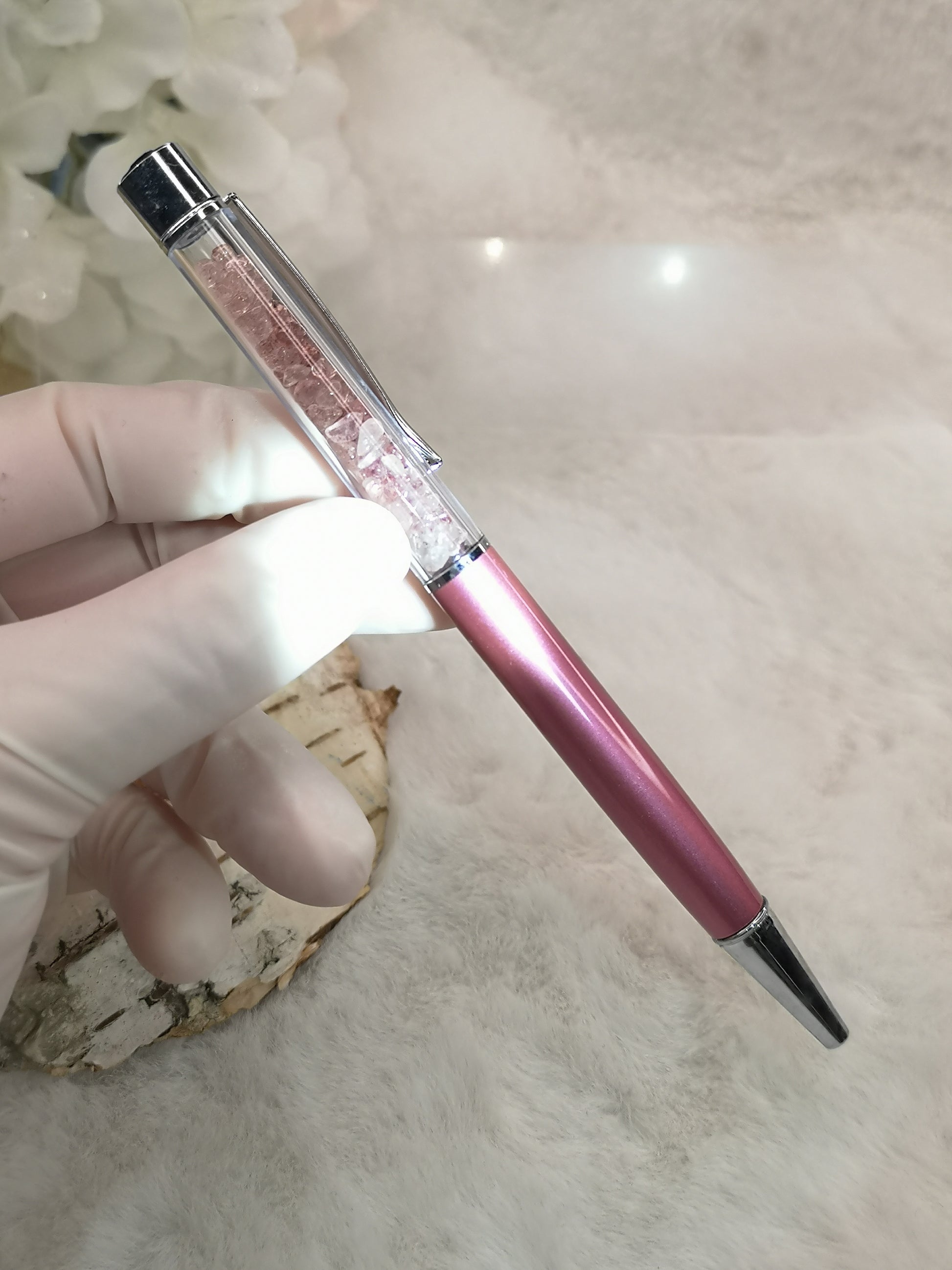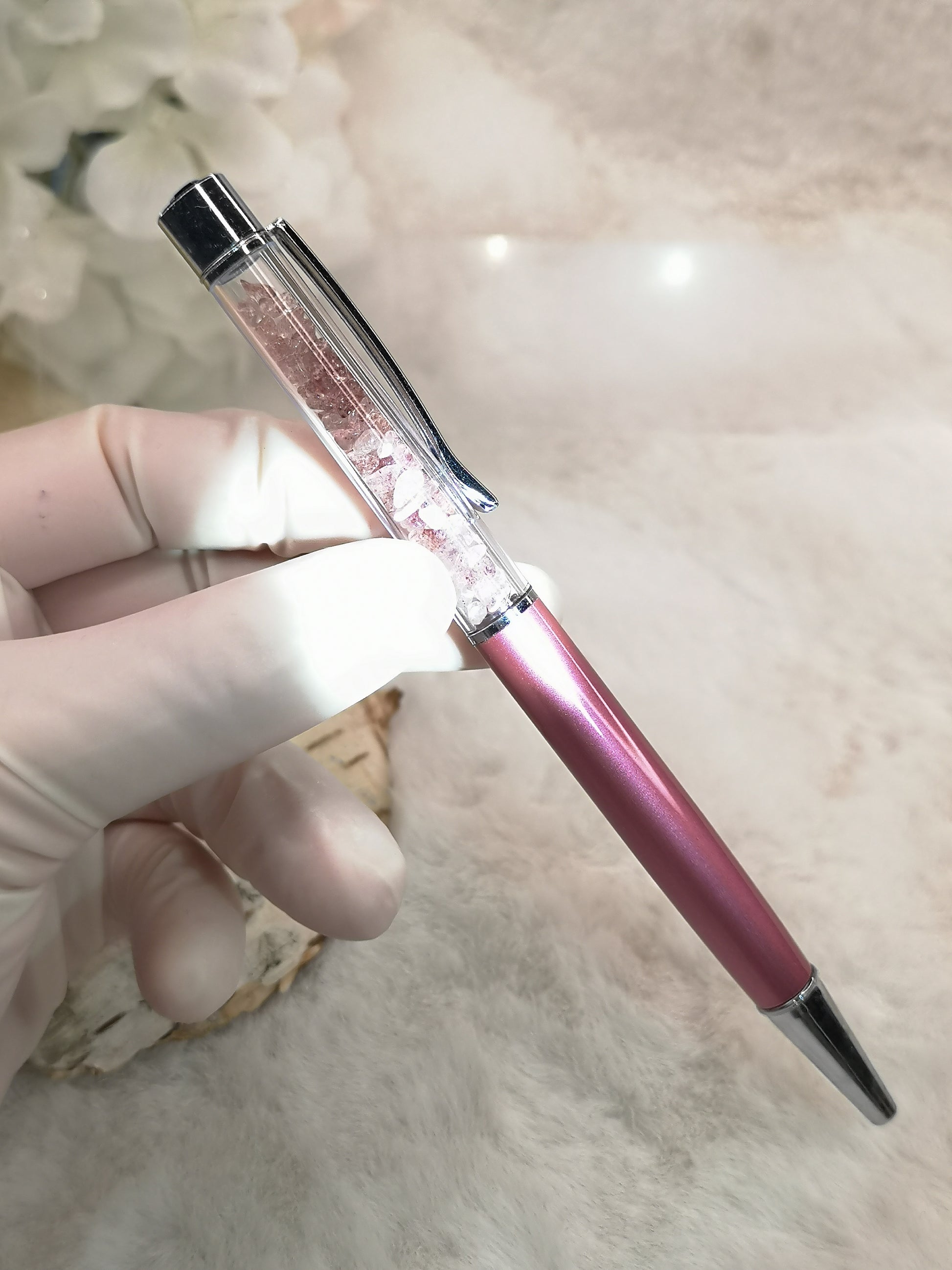 Kugelschreiber mit Rosenquarz Edelsteinchen