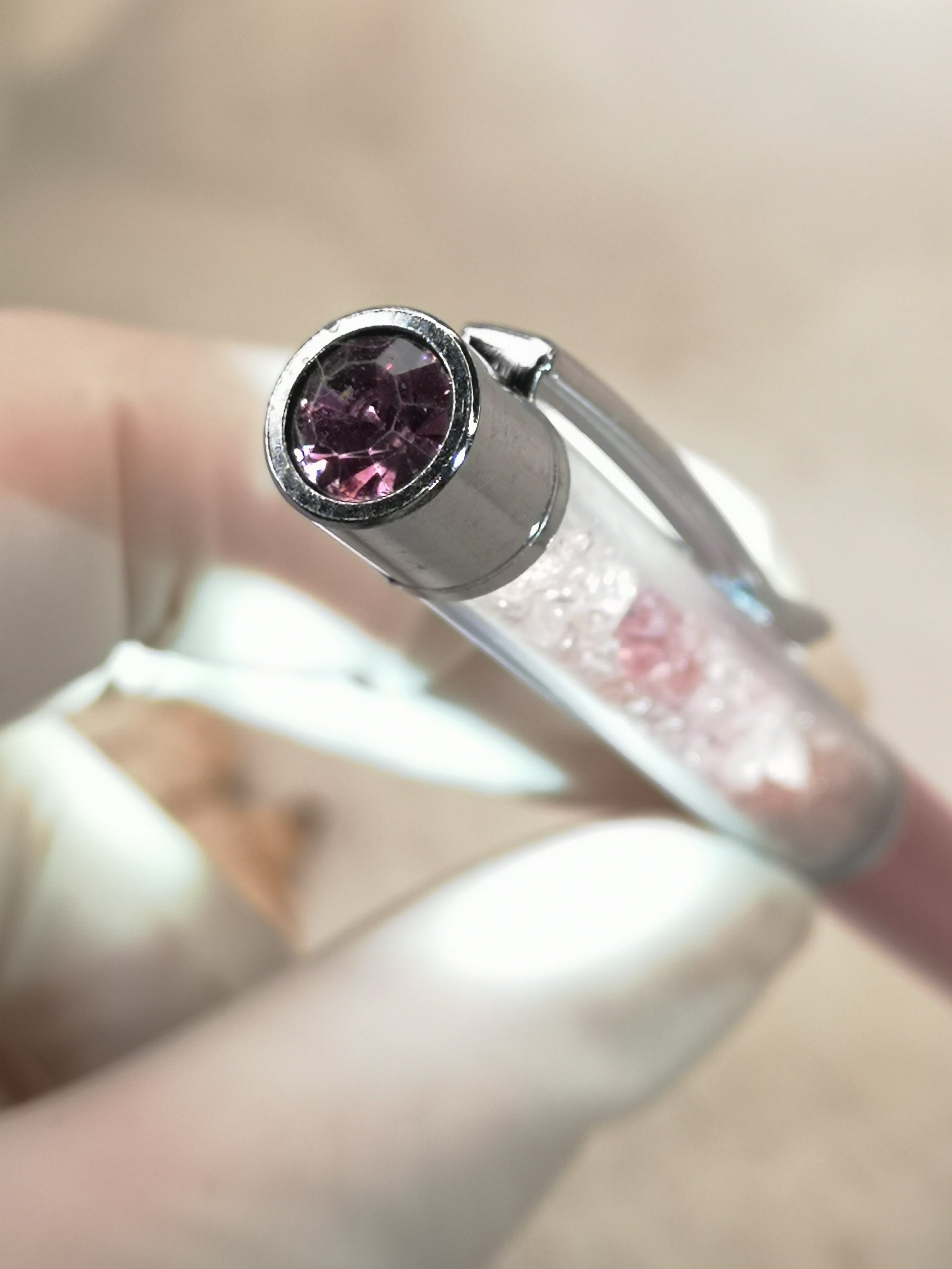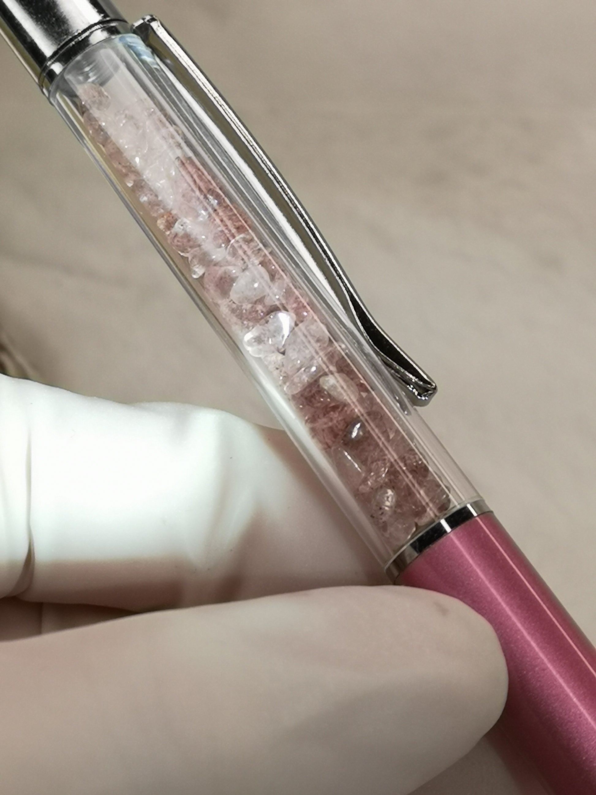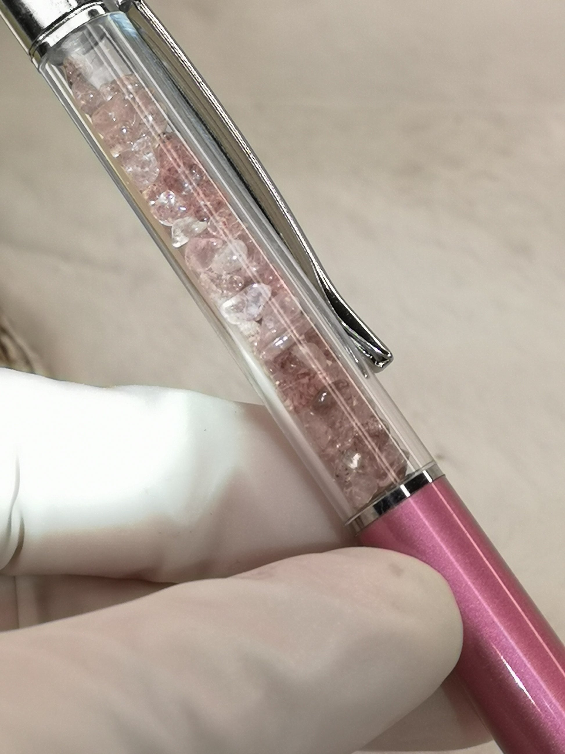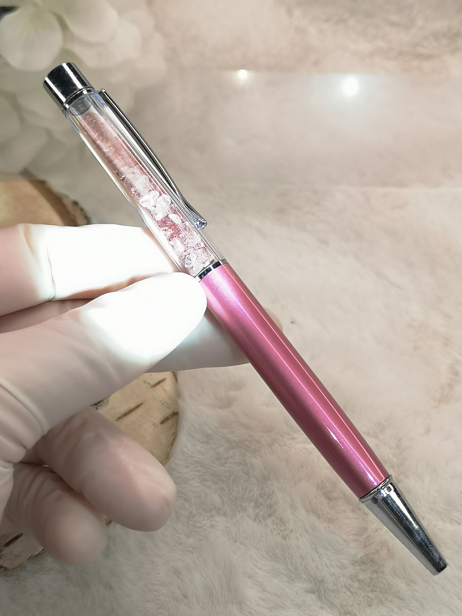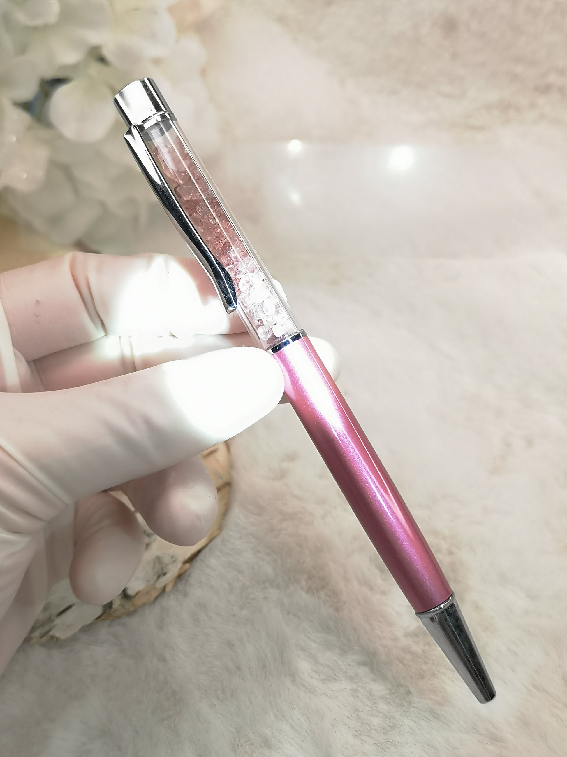 Kugelschreiber mit Rosenquarz Edelsteinchen