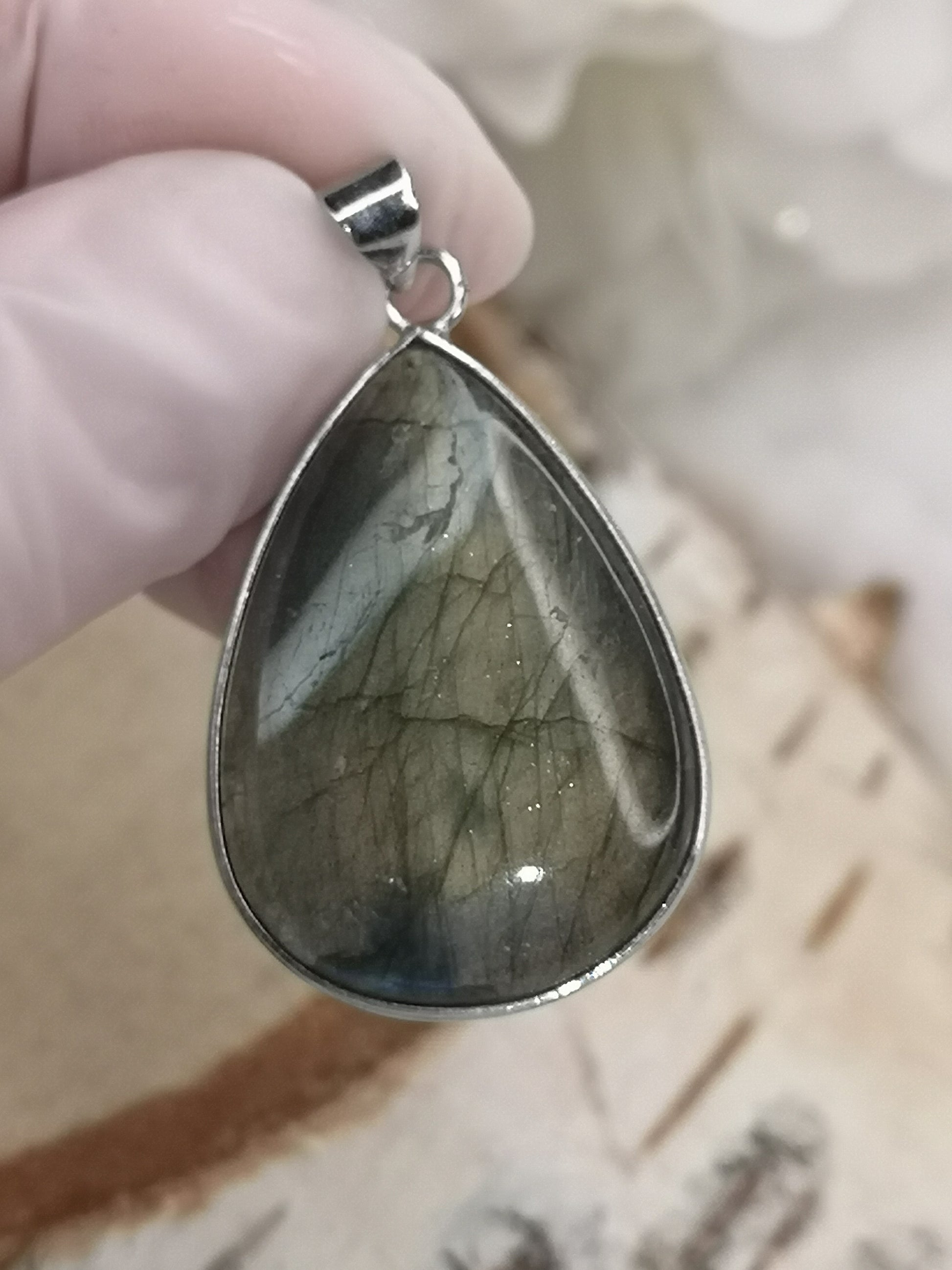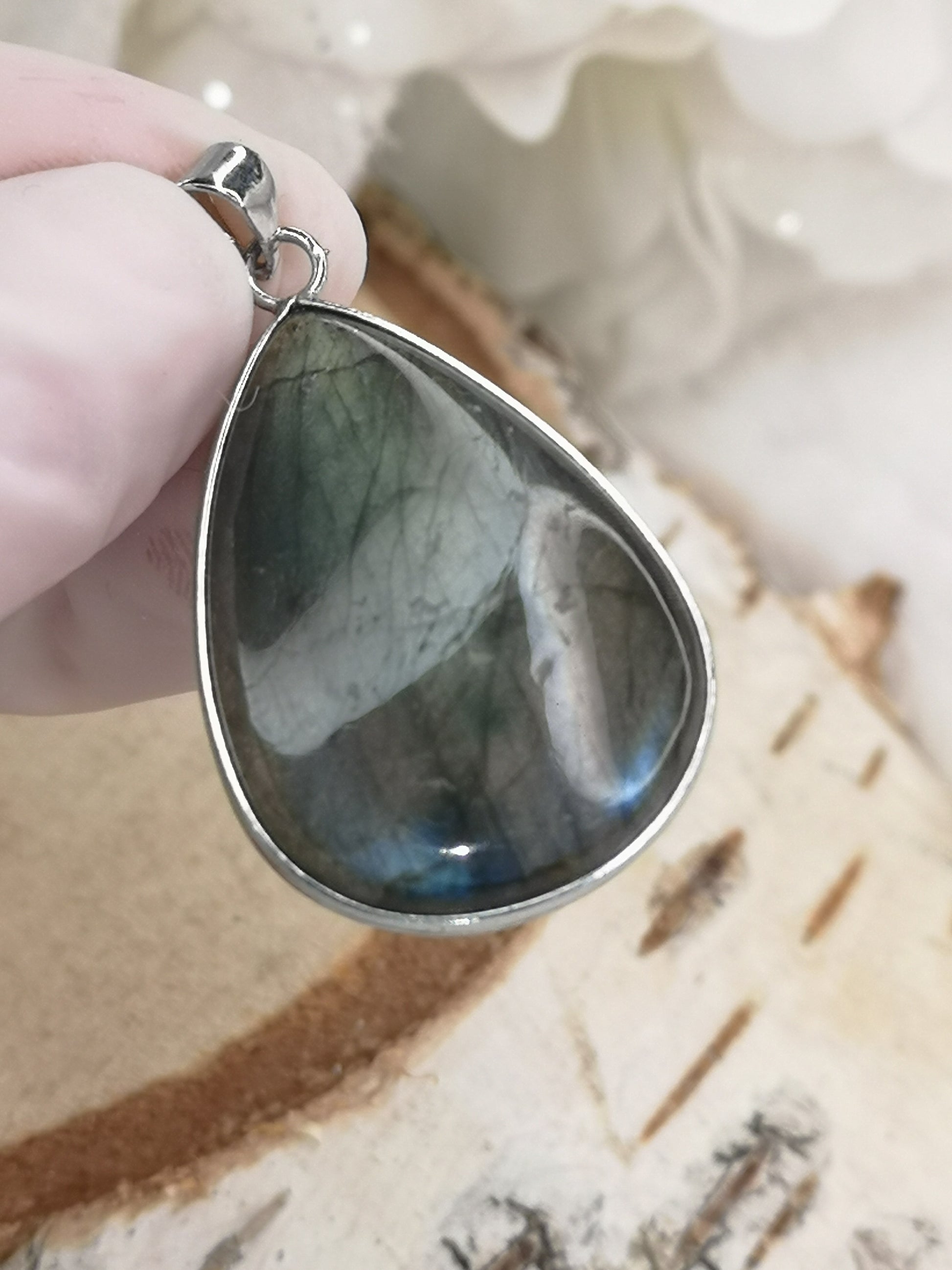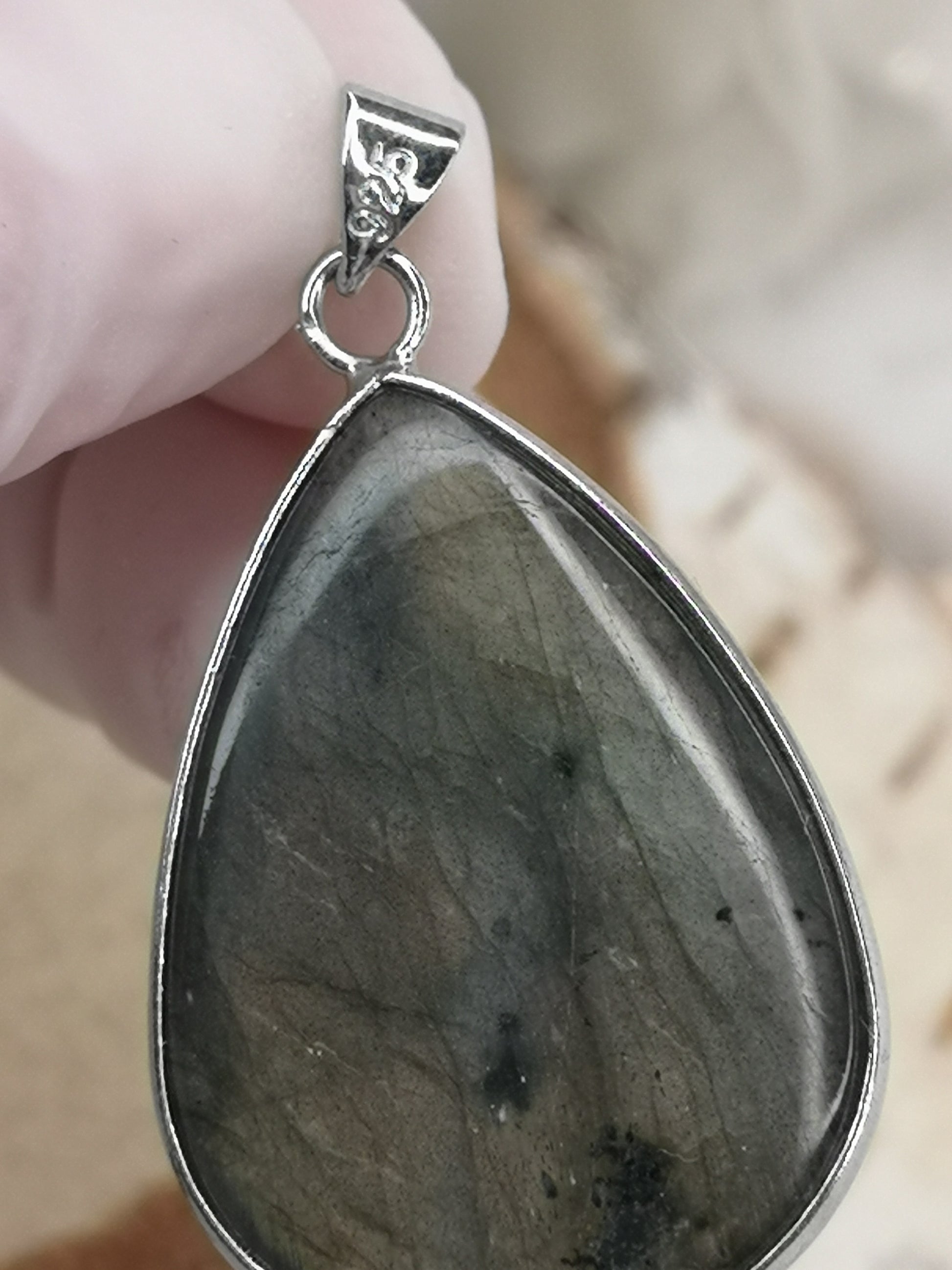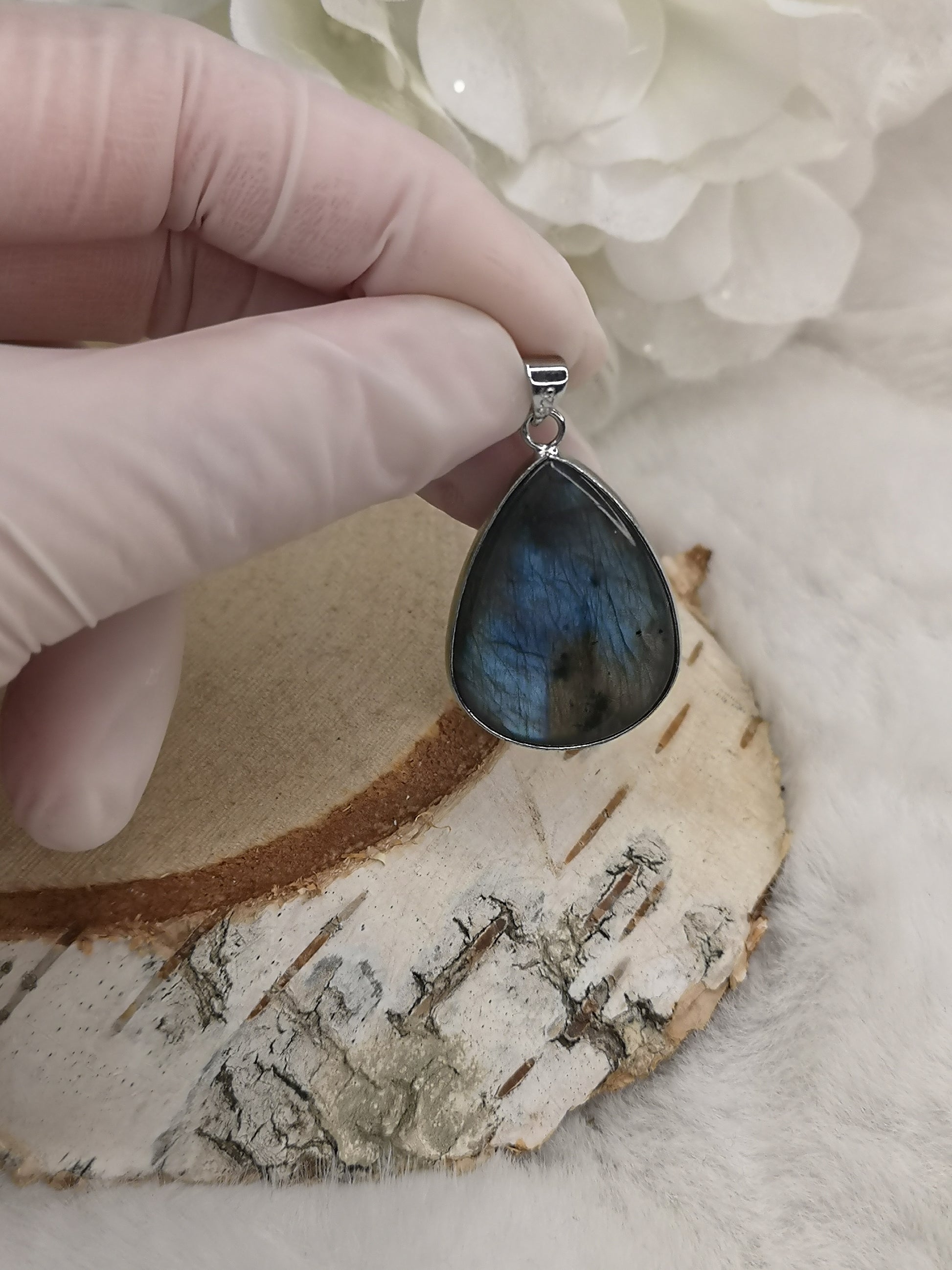 Labradorite Edelstein, 925 Silber Tropfen Ketten Anhänger