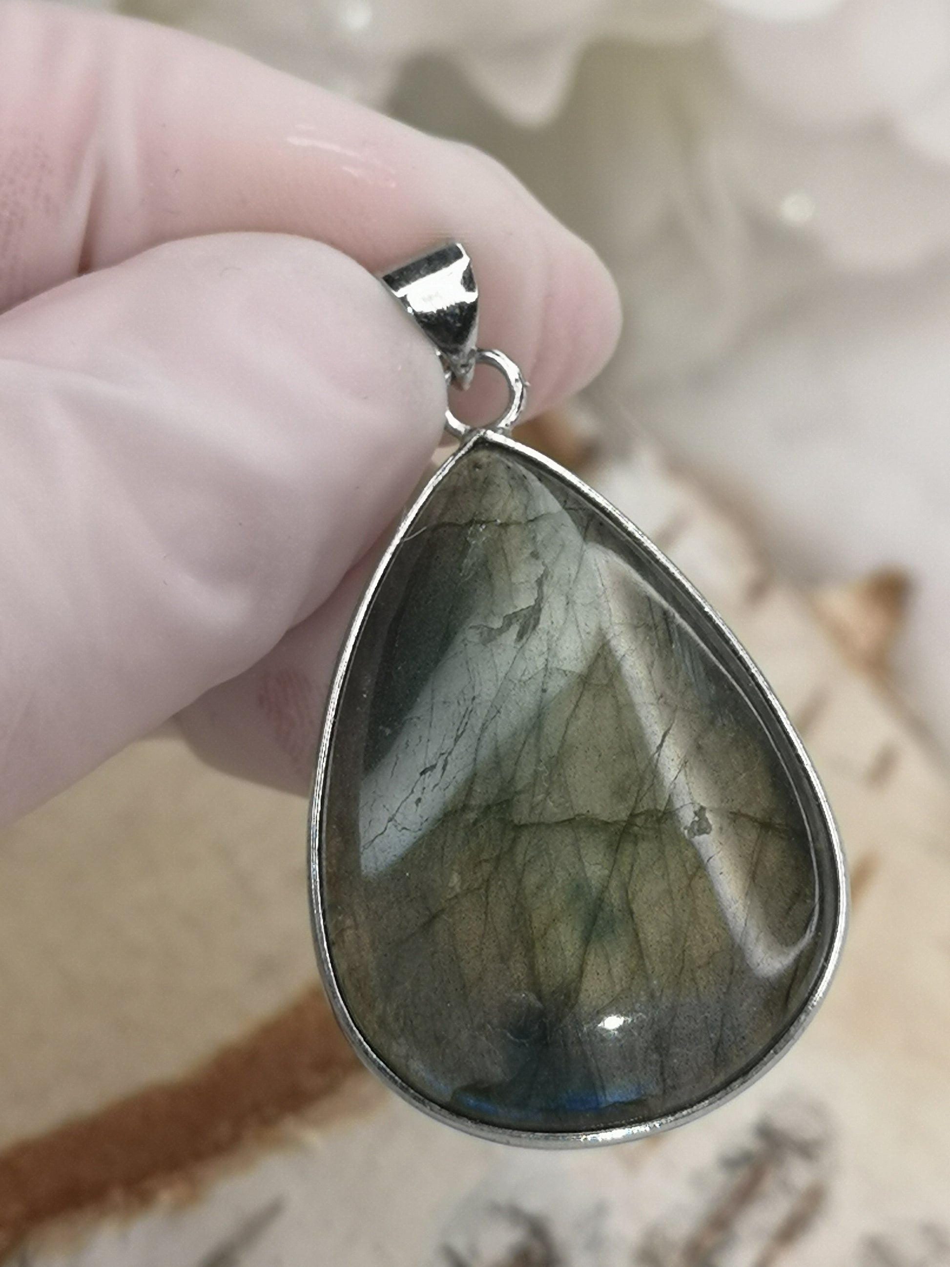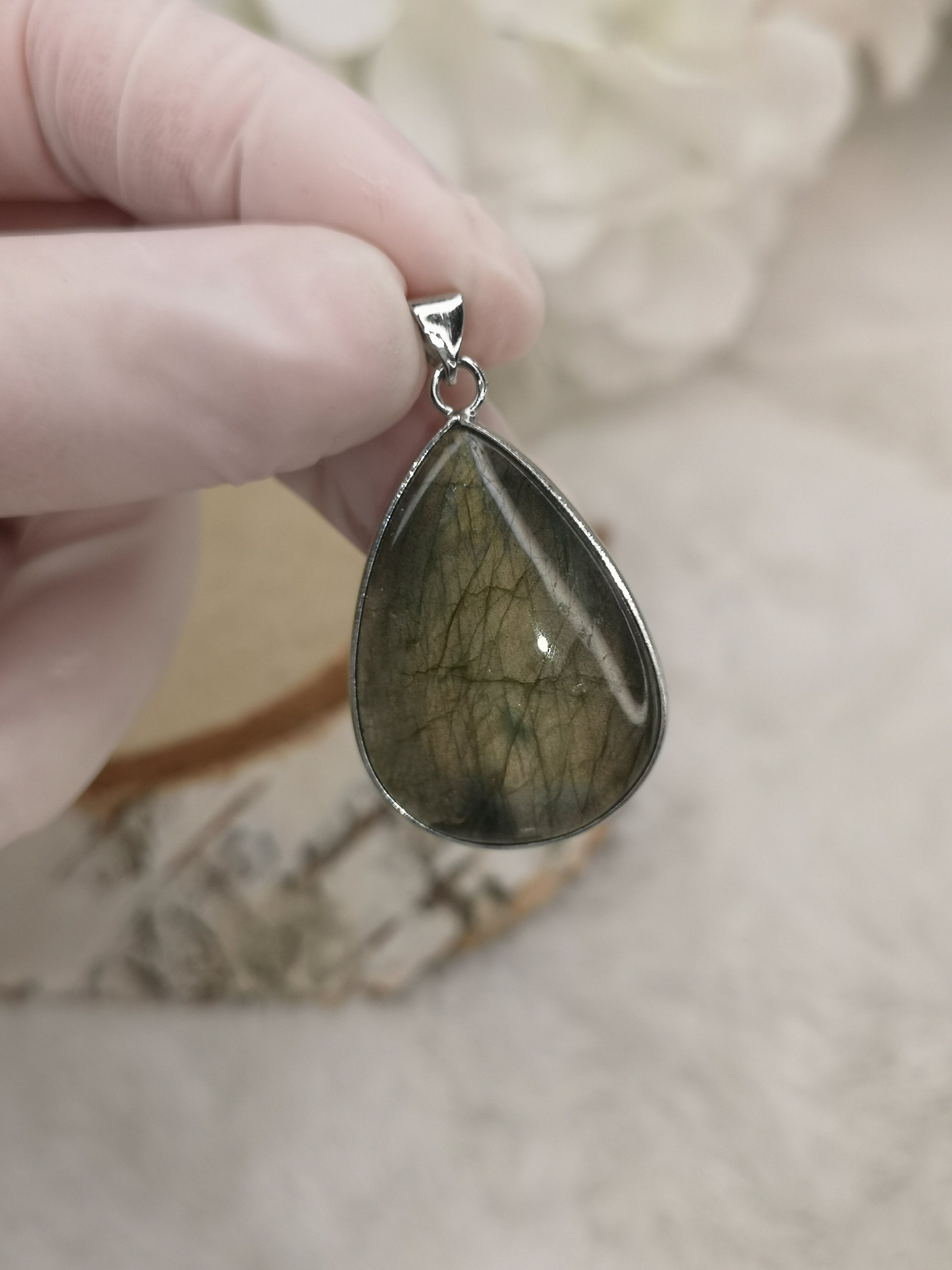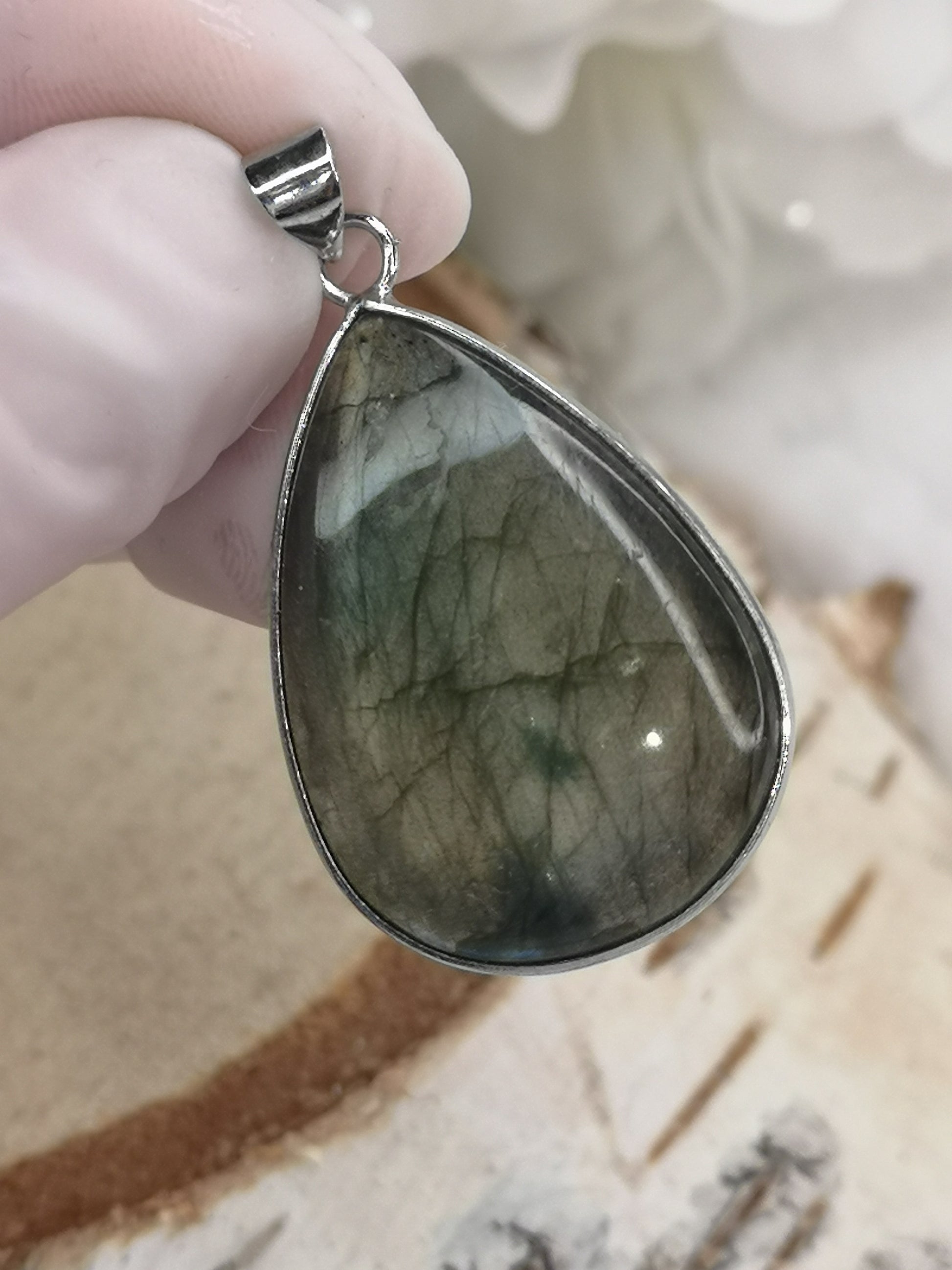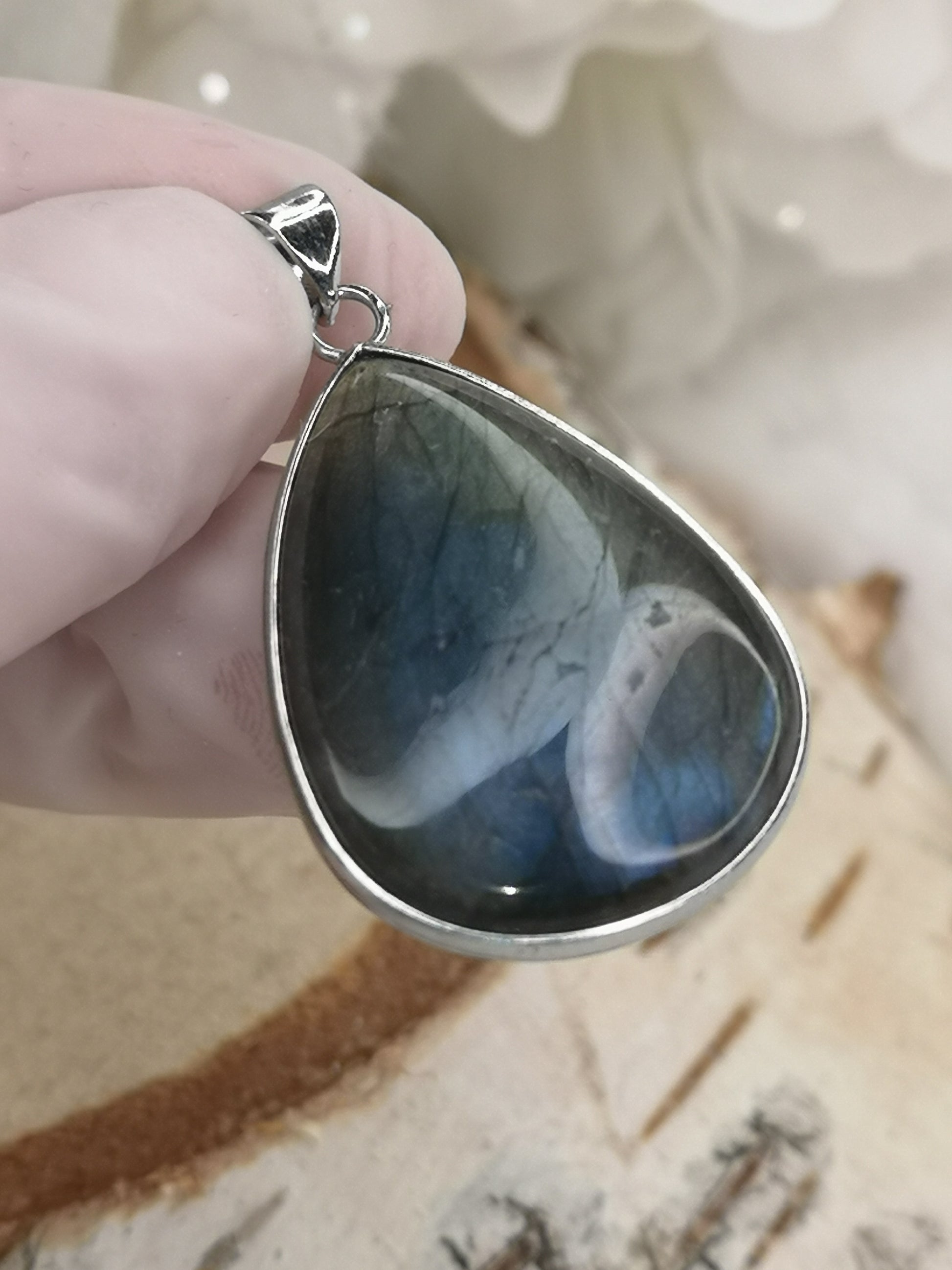Labradorite Edelstein, 925 Silber Tropfen Ketten Anhänger