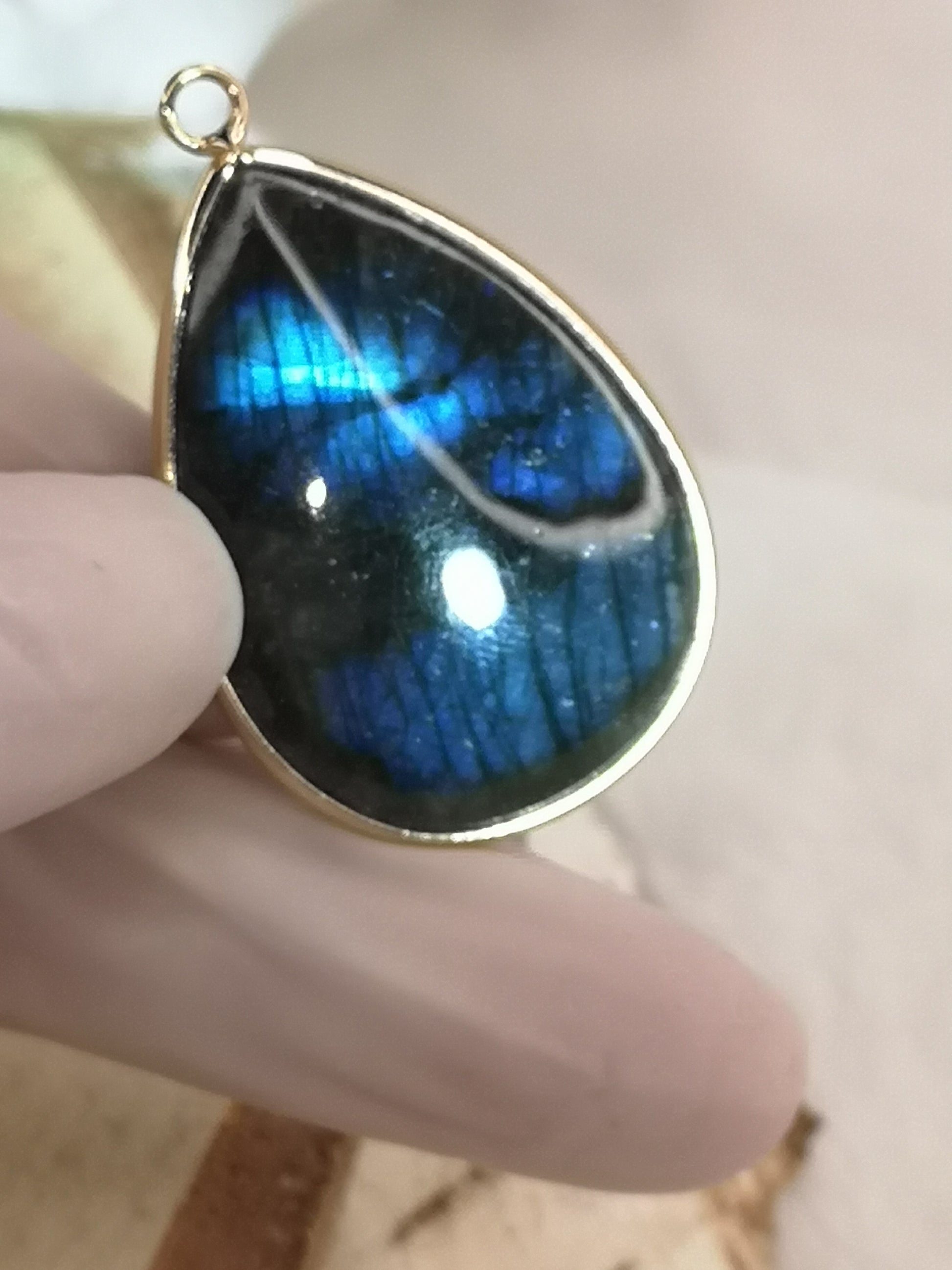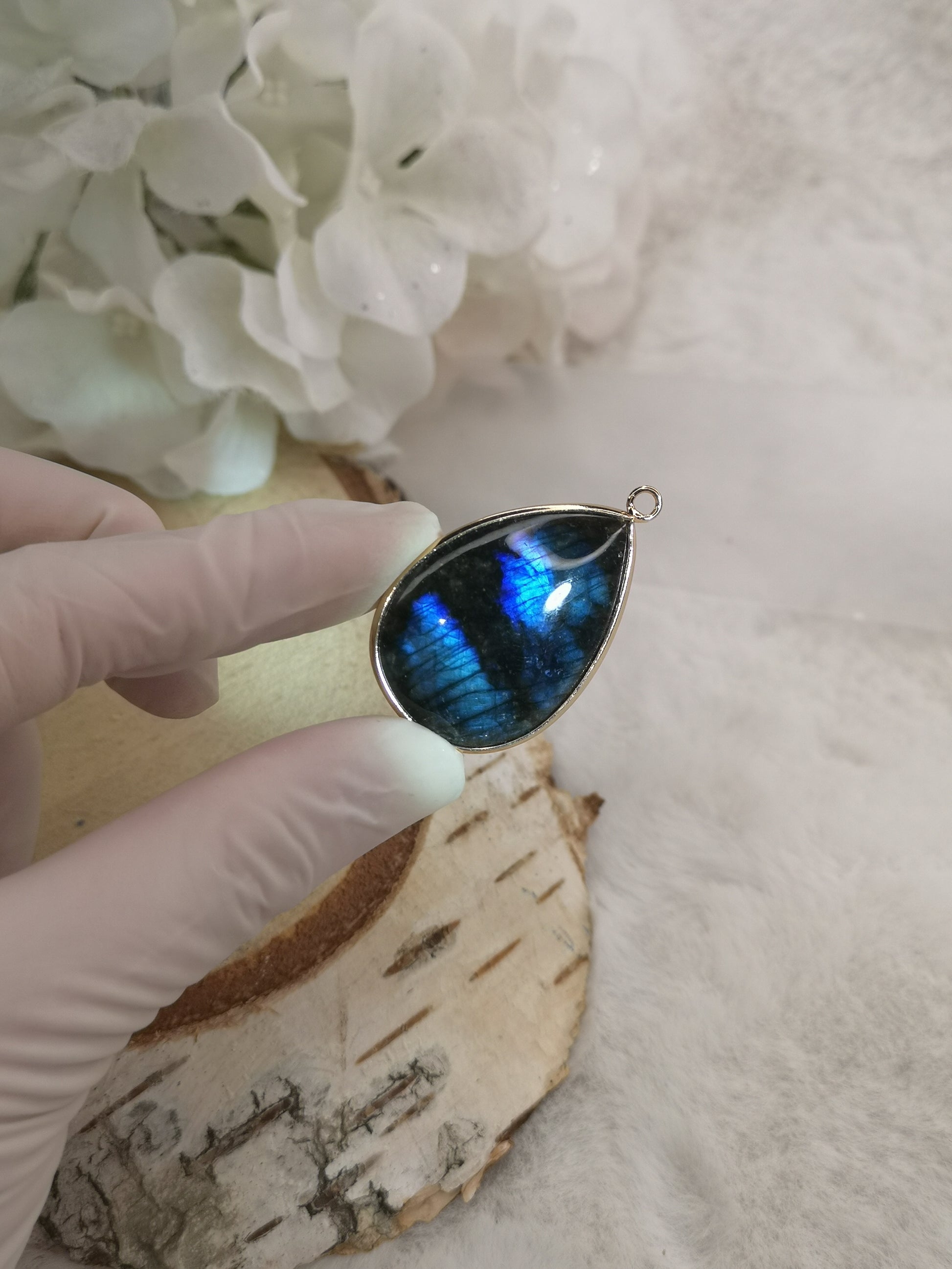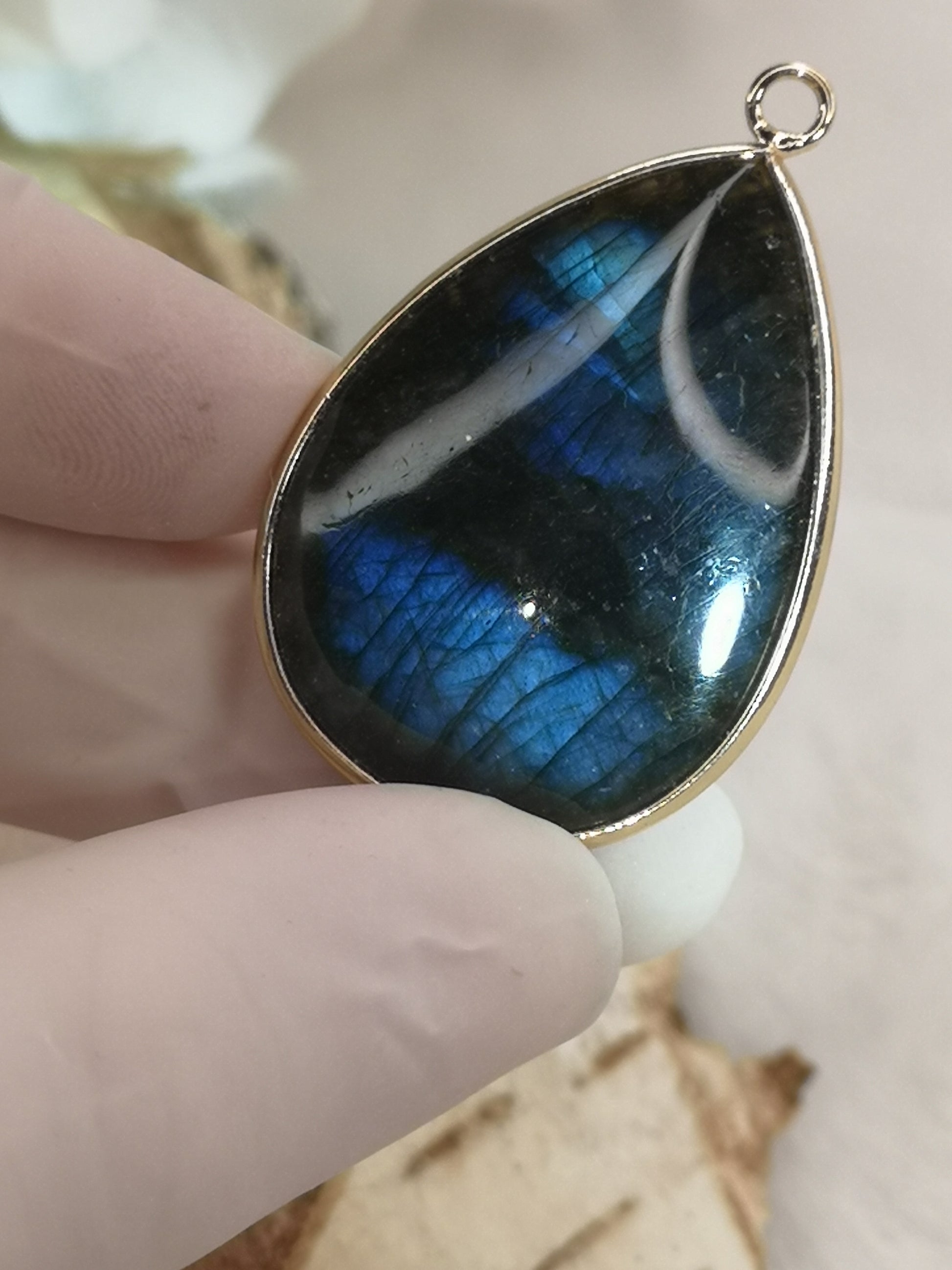 Labradorite Tropfen Edelstein Ketten Anhänger aus Kupfer, goldfarbig