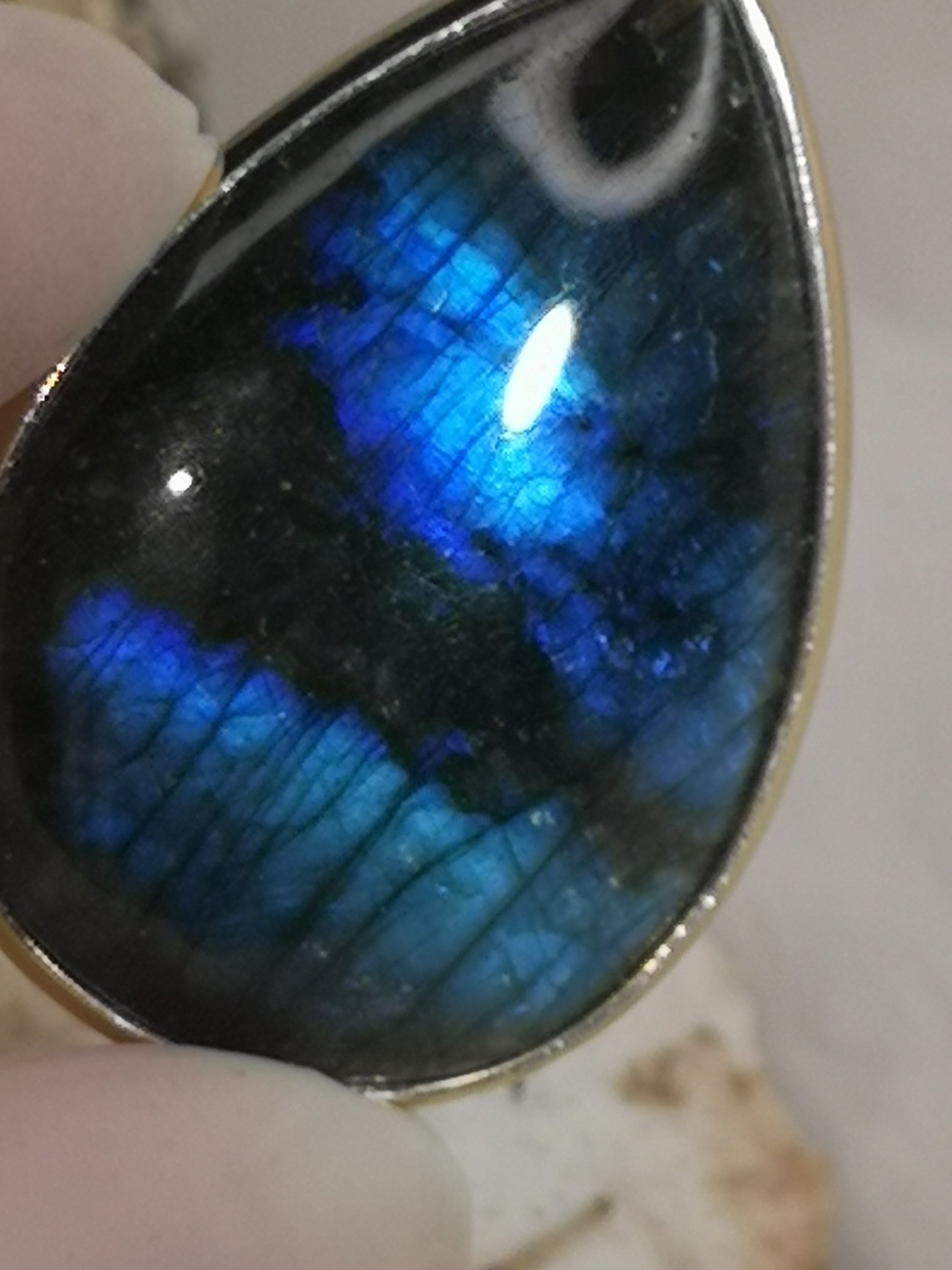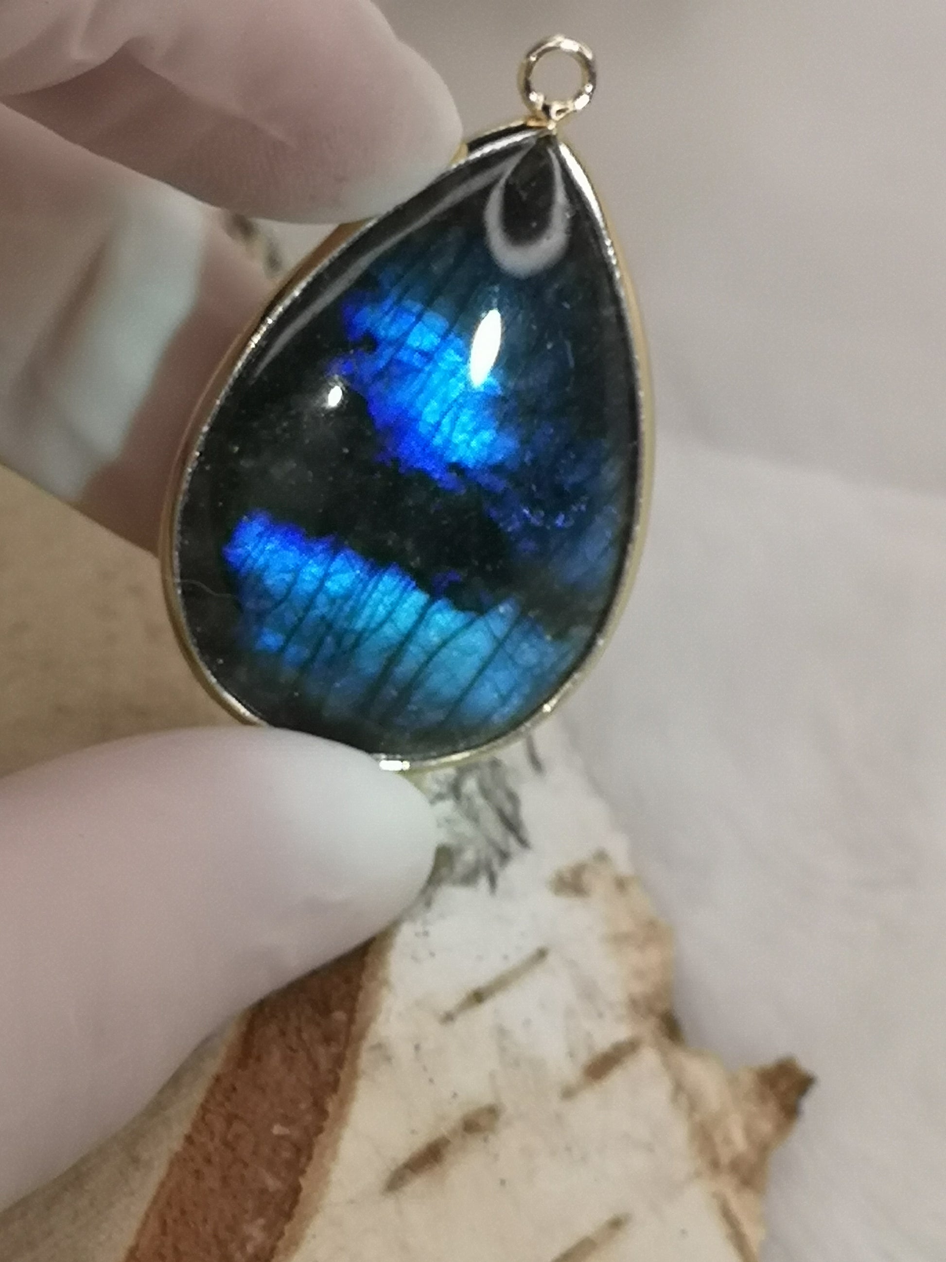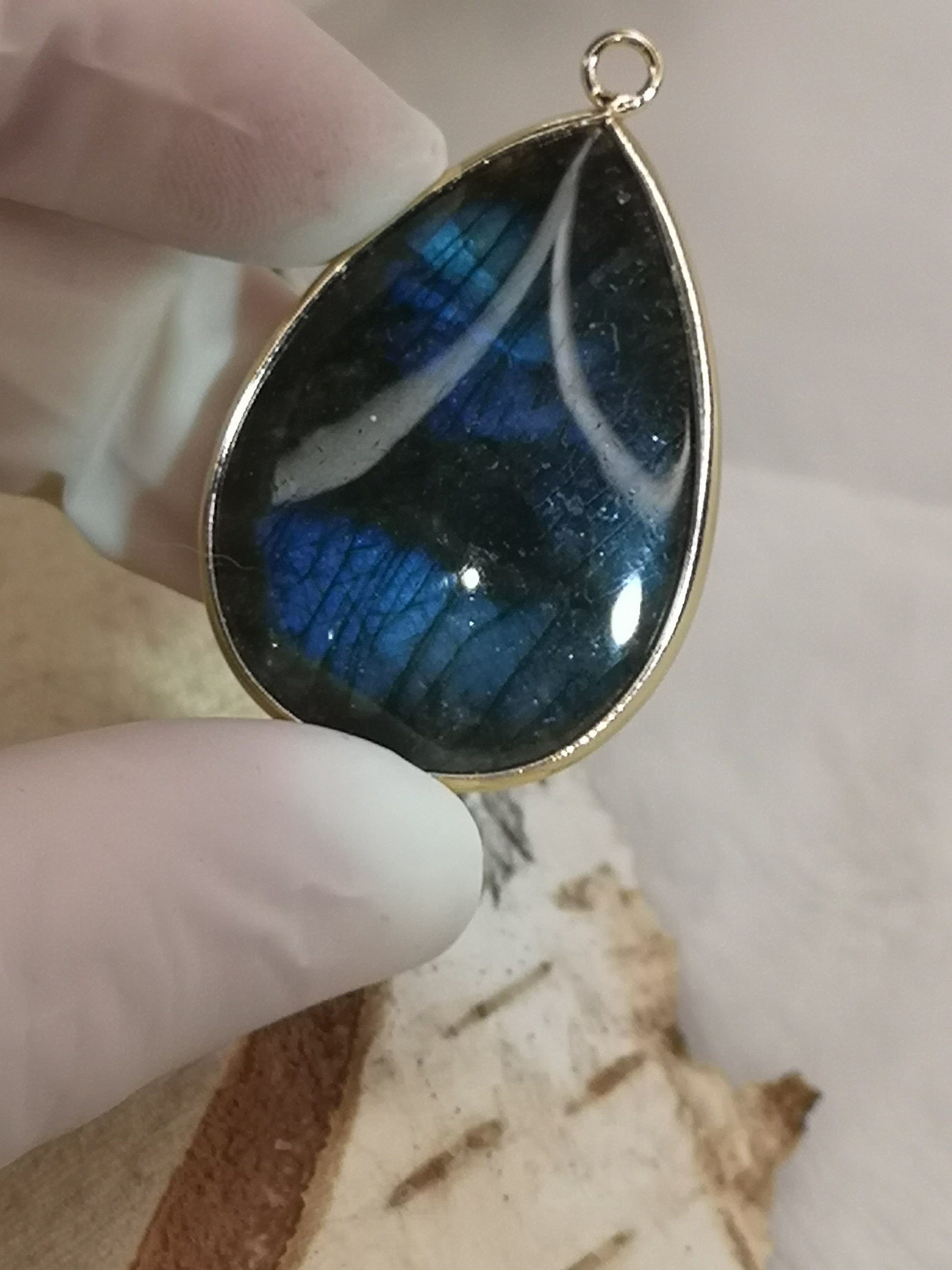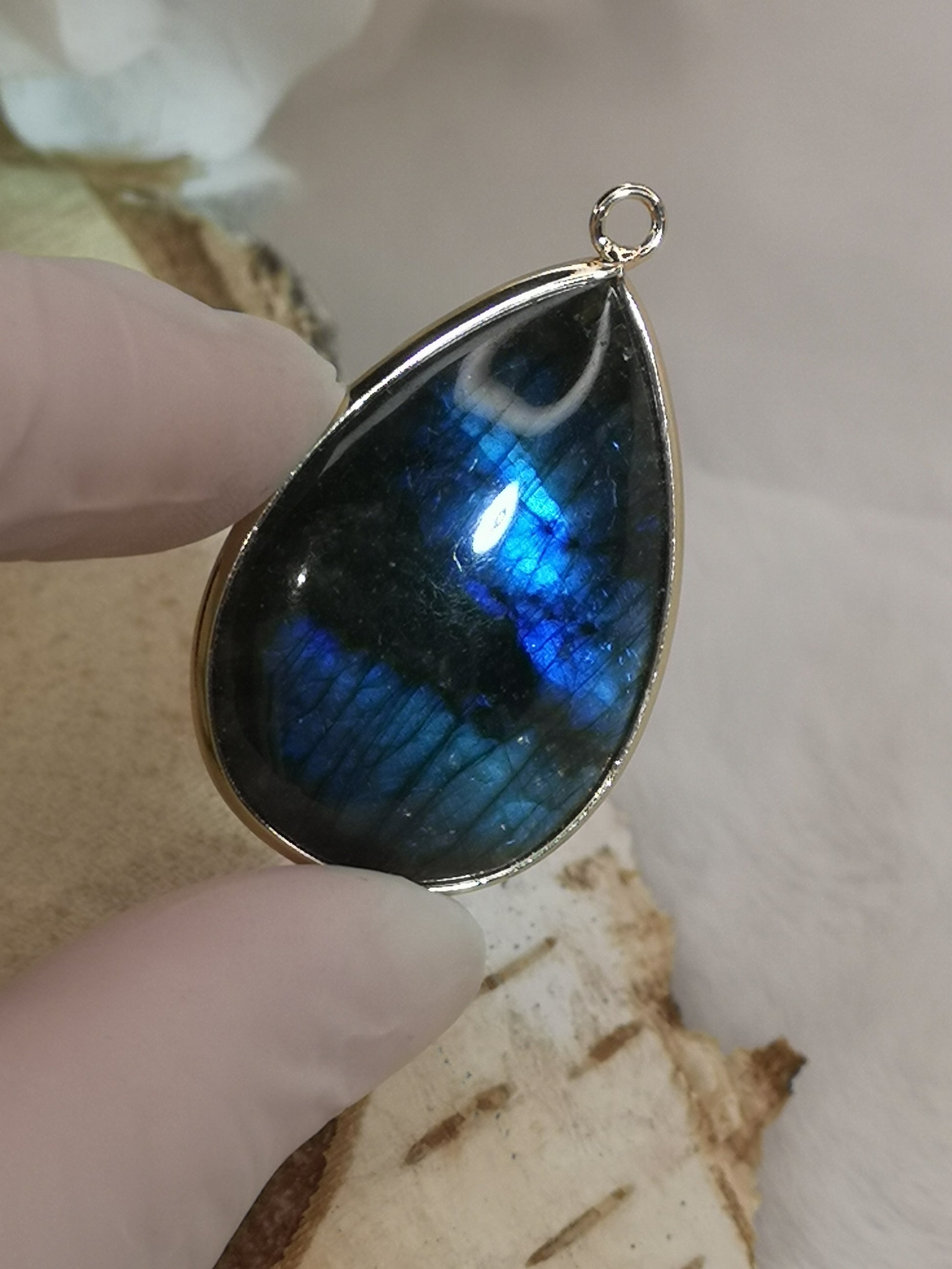 Labradorite Tropfen Edelstein Ketten Anhänger aus Kupfer, goldfarbig