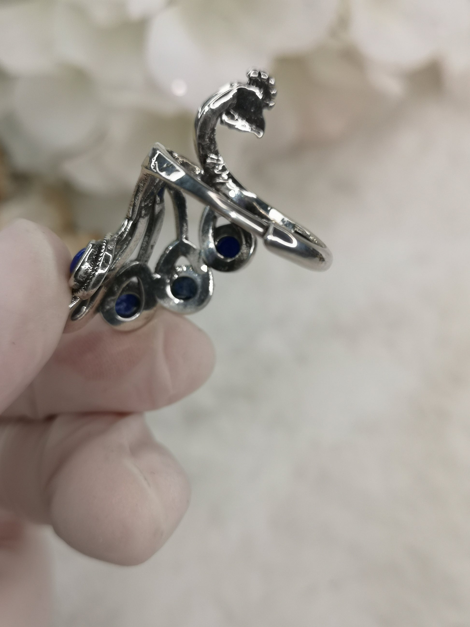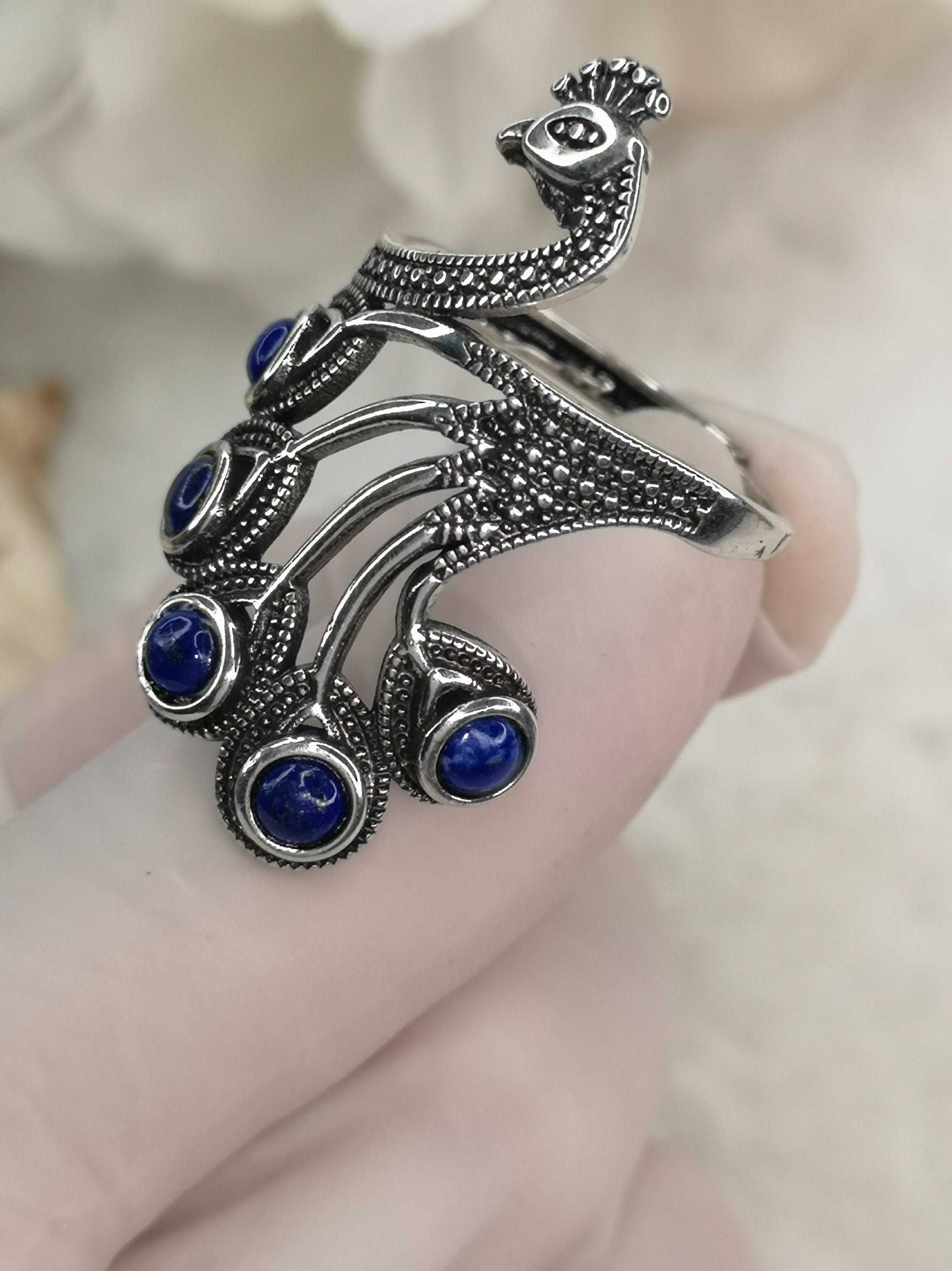 Lapislazuli Lapis Edelstein Markasiten Paradies Pfau Vogel, Kupfer Ring