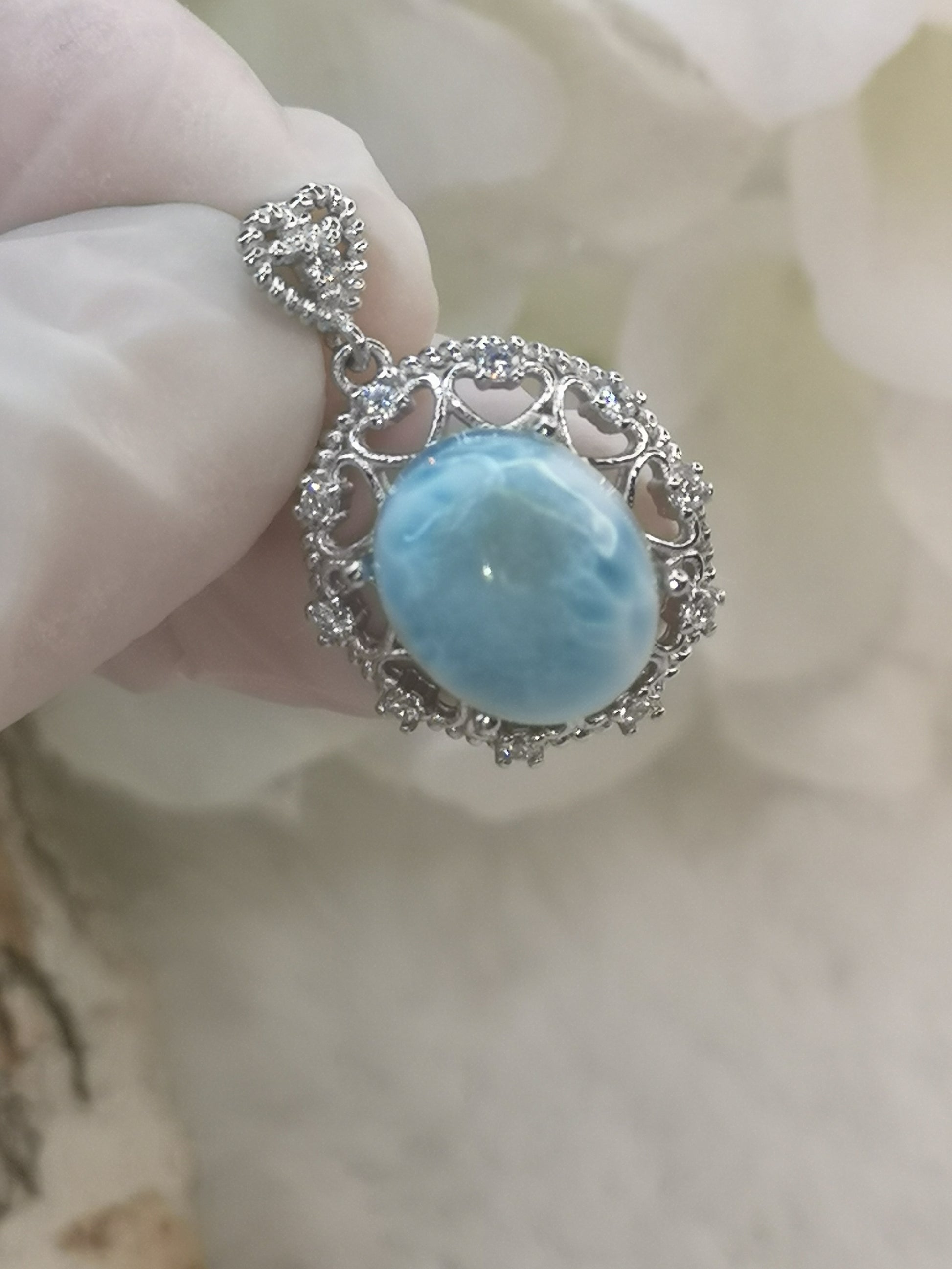 Larimar Edelstein, Kupfer Ketten Anhänger