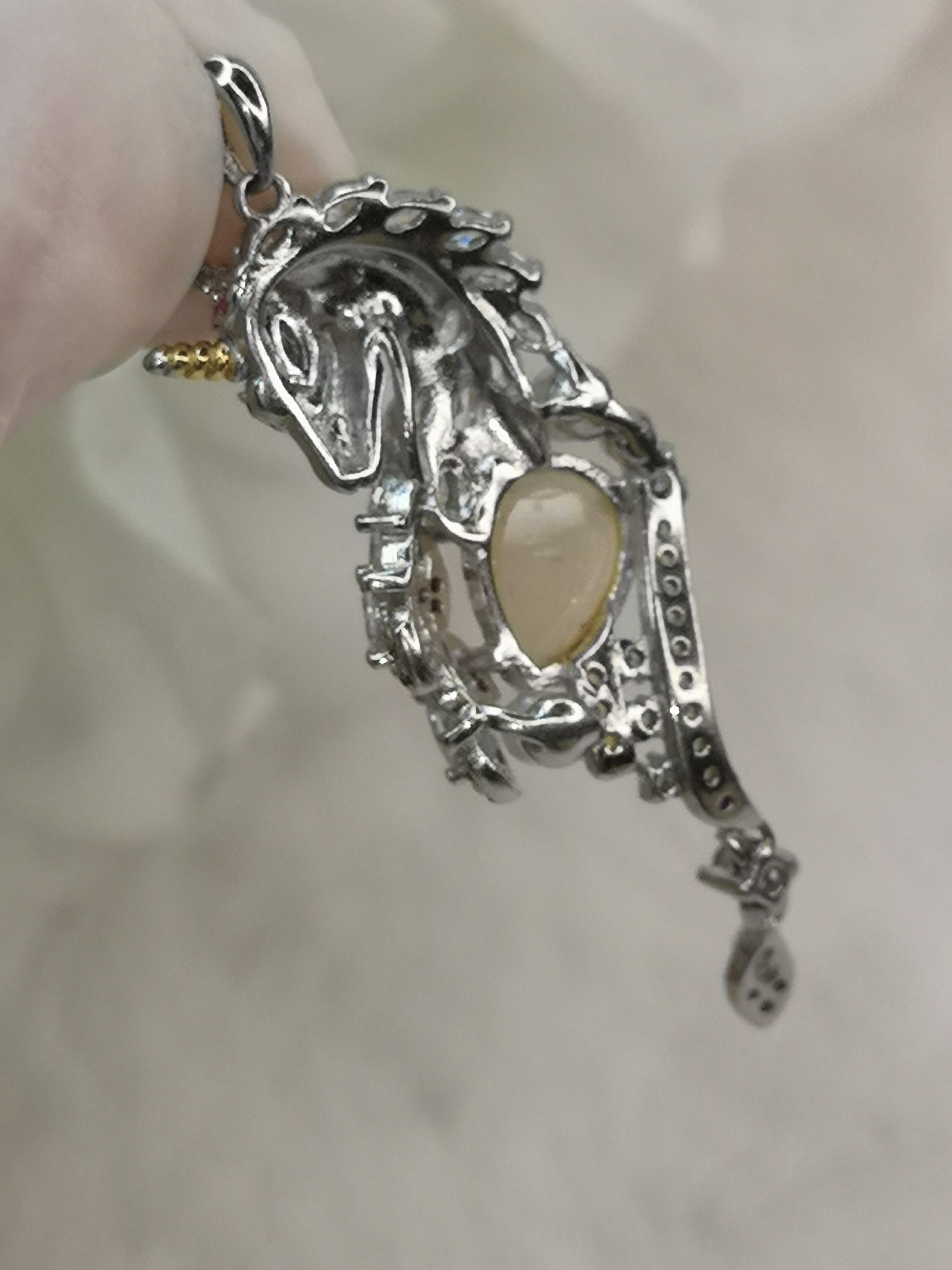 Opal Edelstein, 925 Silber Ketten Anhänger, Einhorn Design