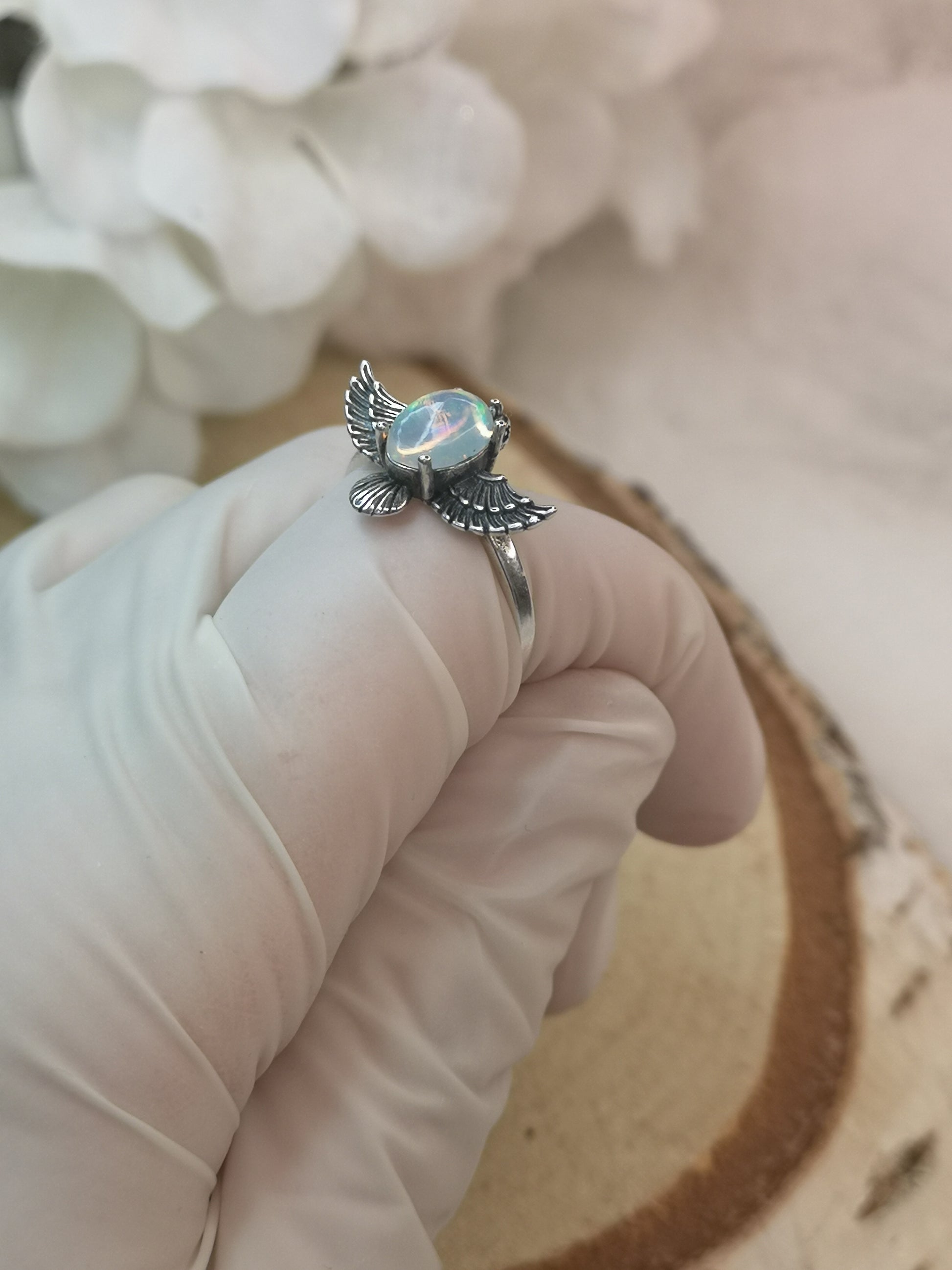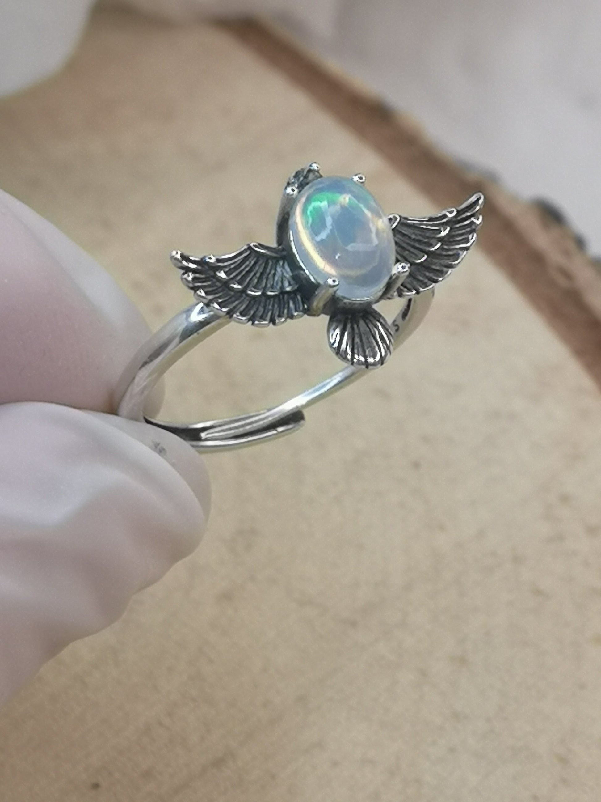 Opal Edelstein 925 Silber Ring, verstellbar
