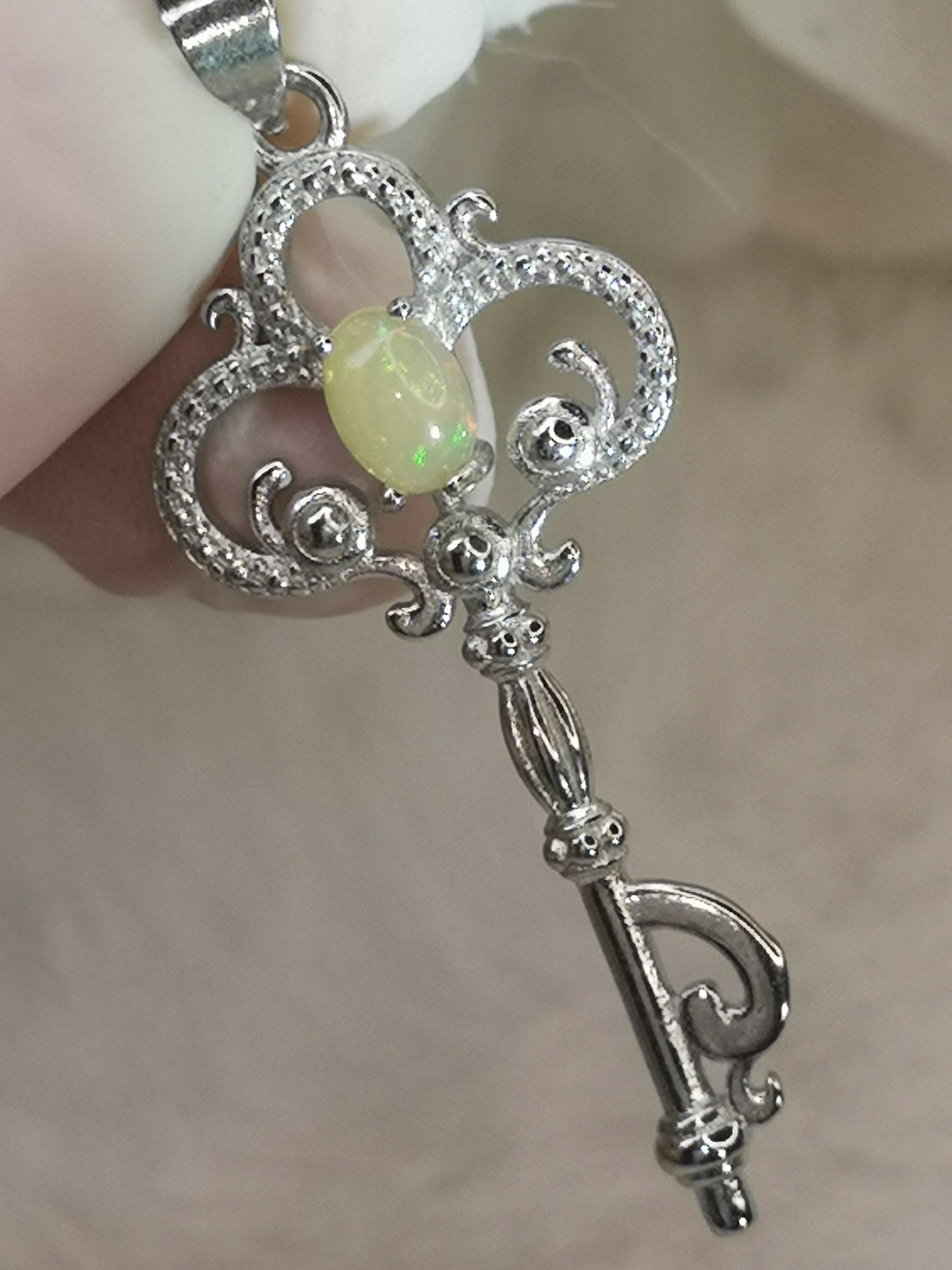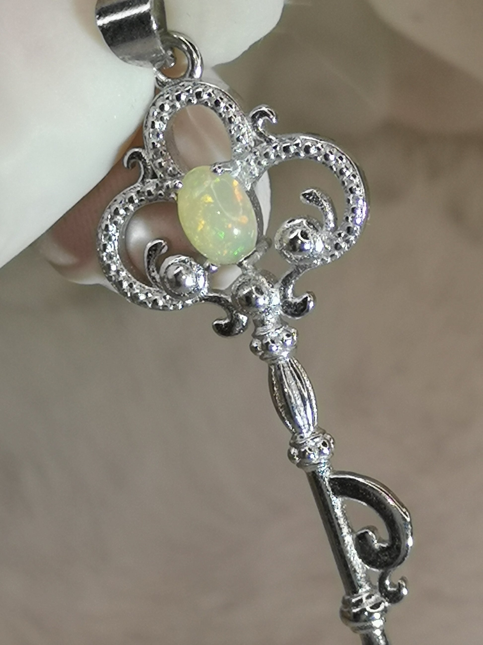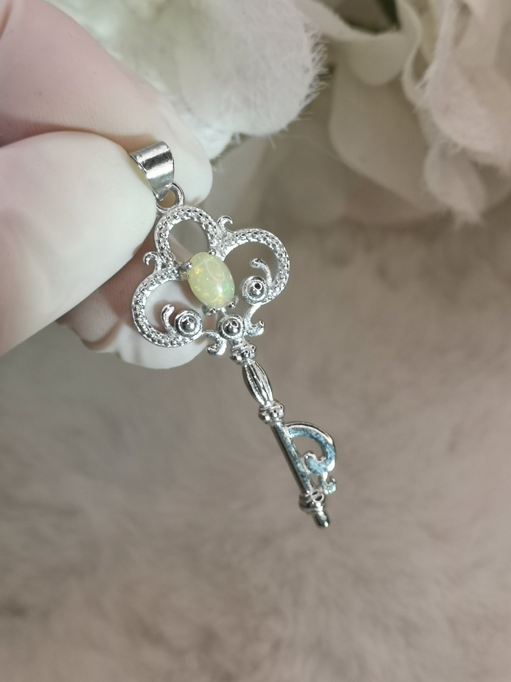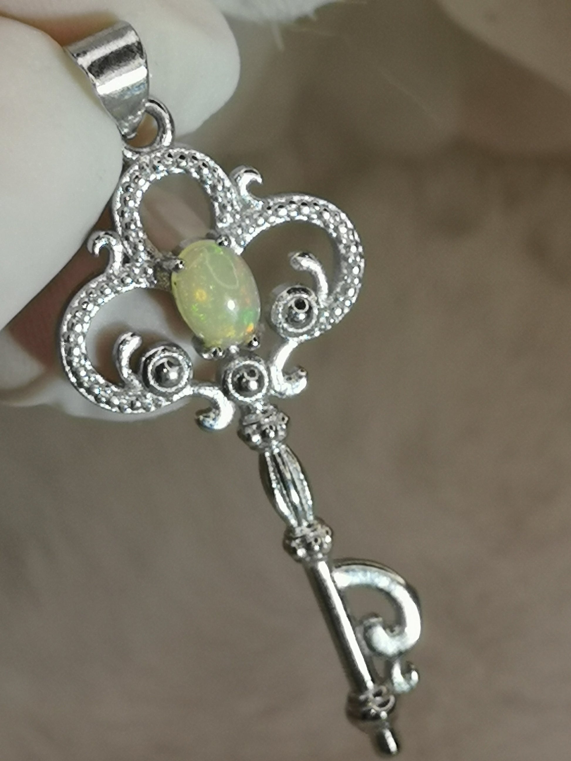 Opal Edelstein, Schlüssel Kupfer Ketten Anhänger