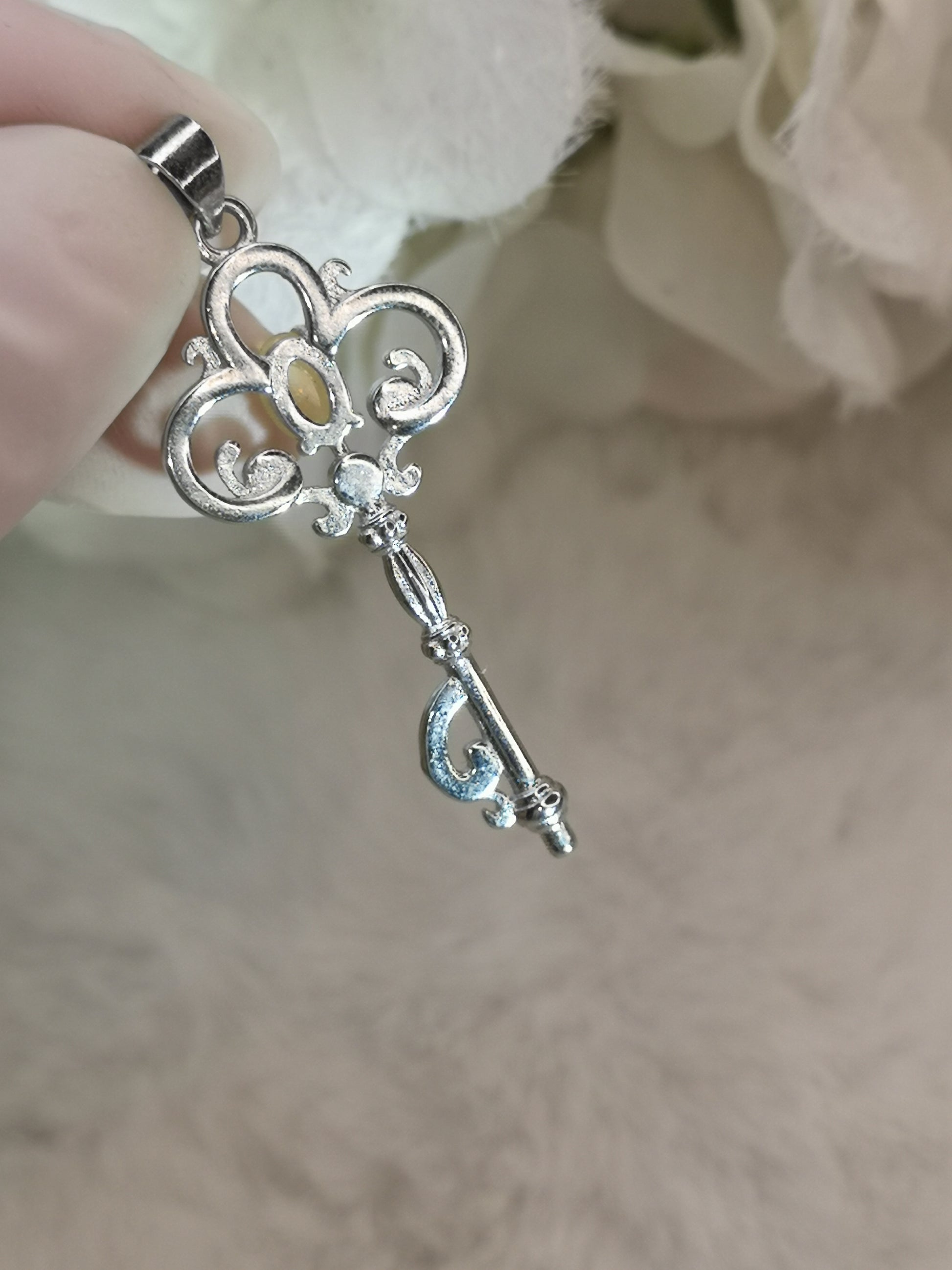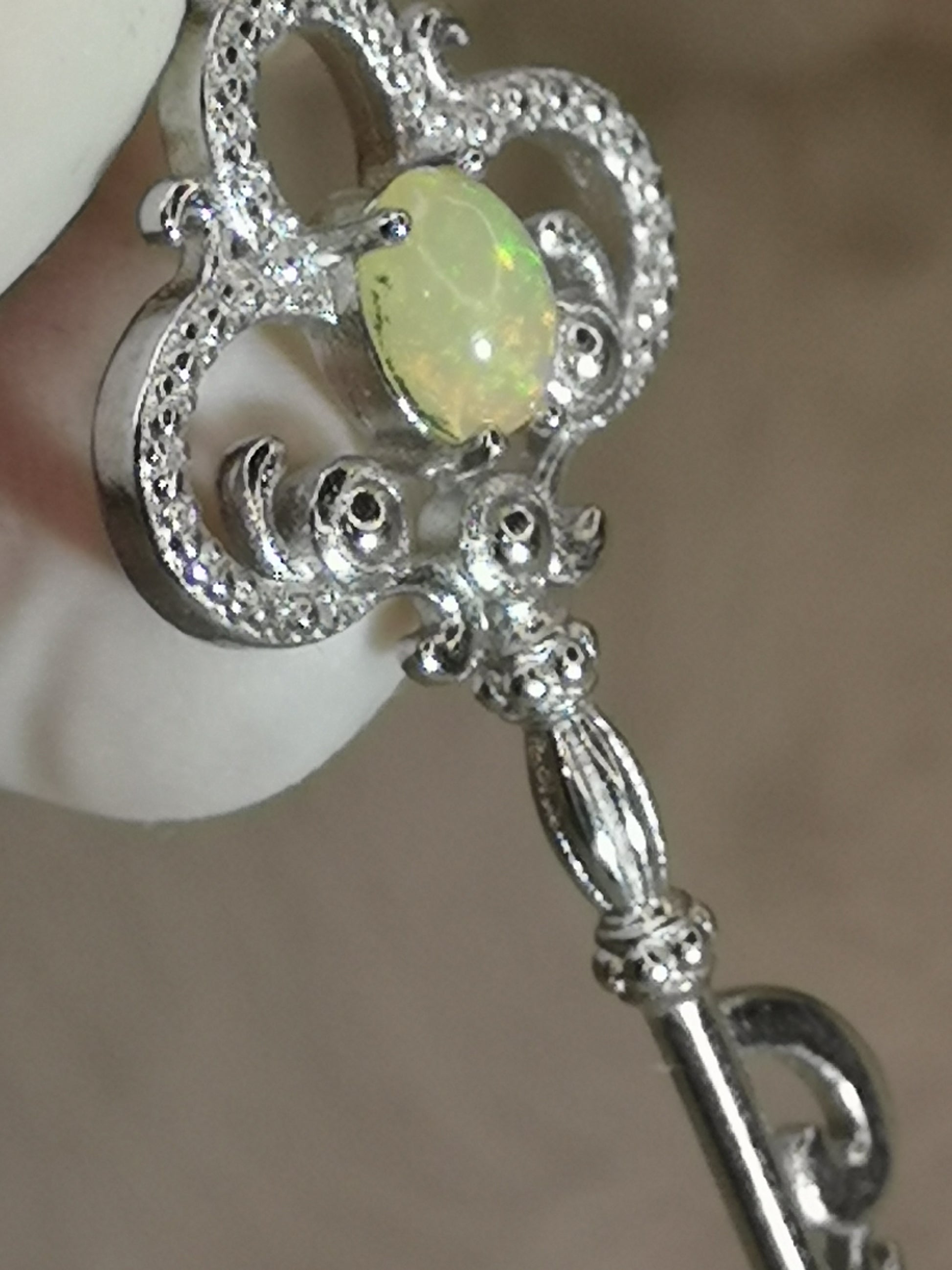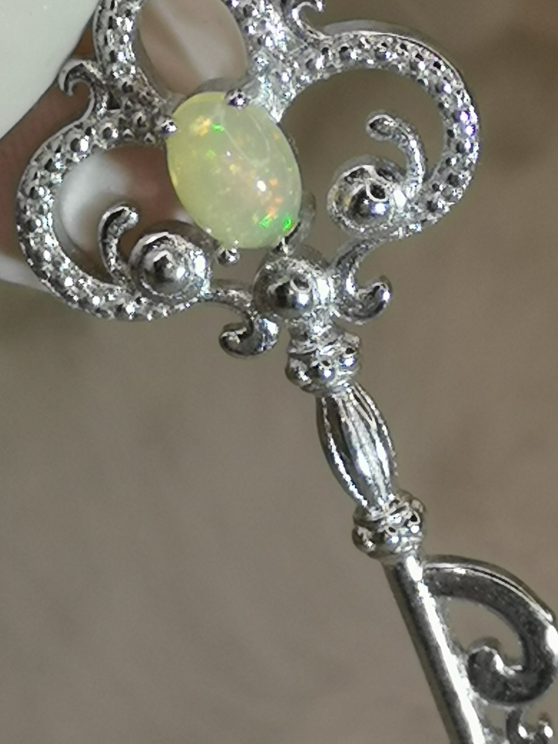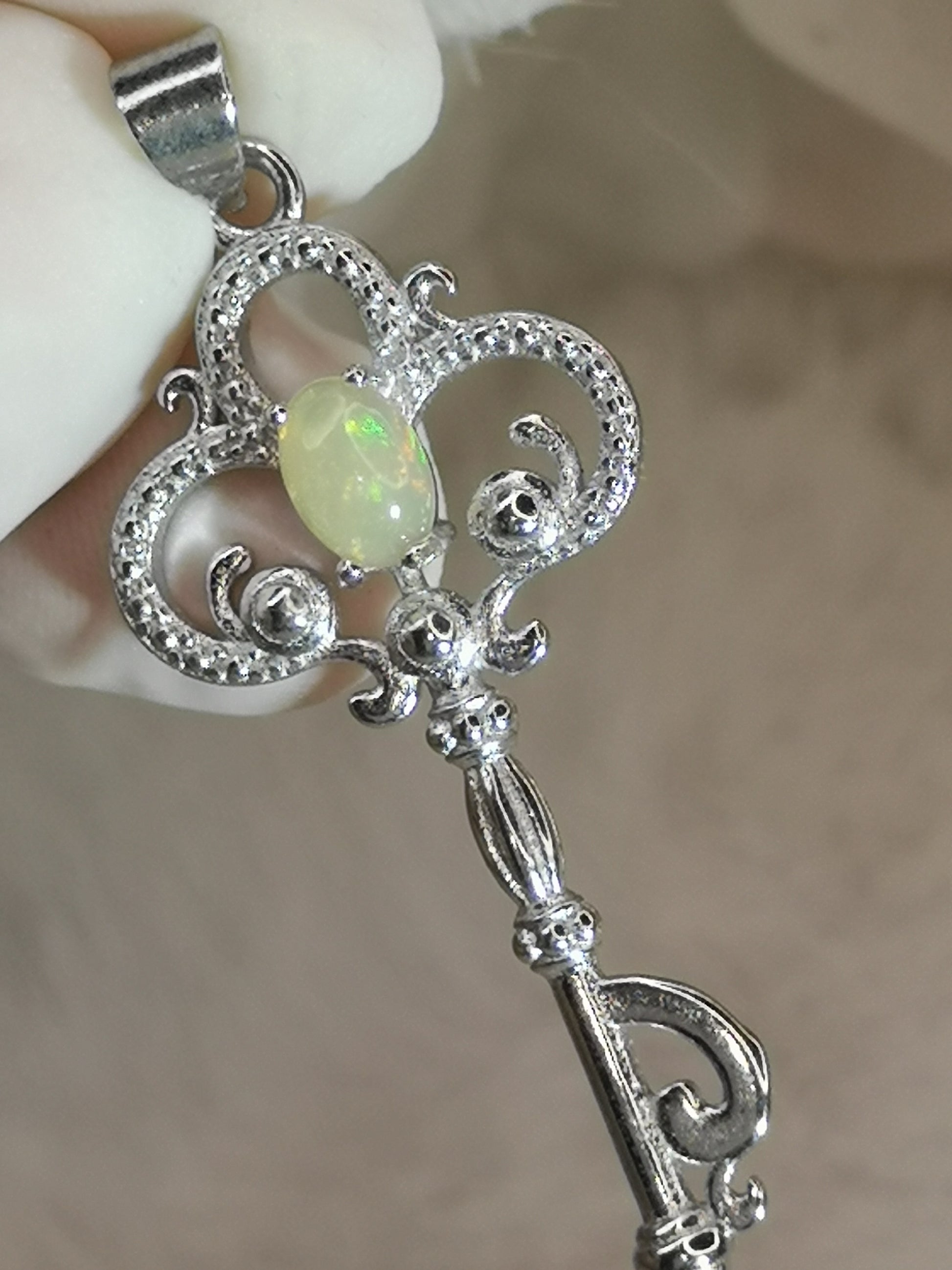 Opal Edelstein, Schlüssel Kupfer Ketten Anhänger