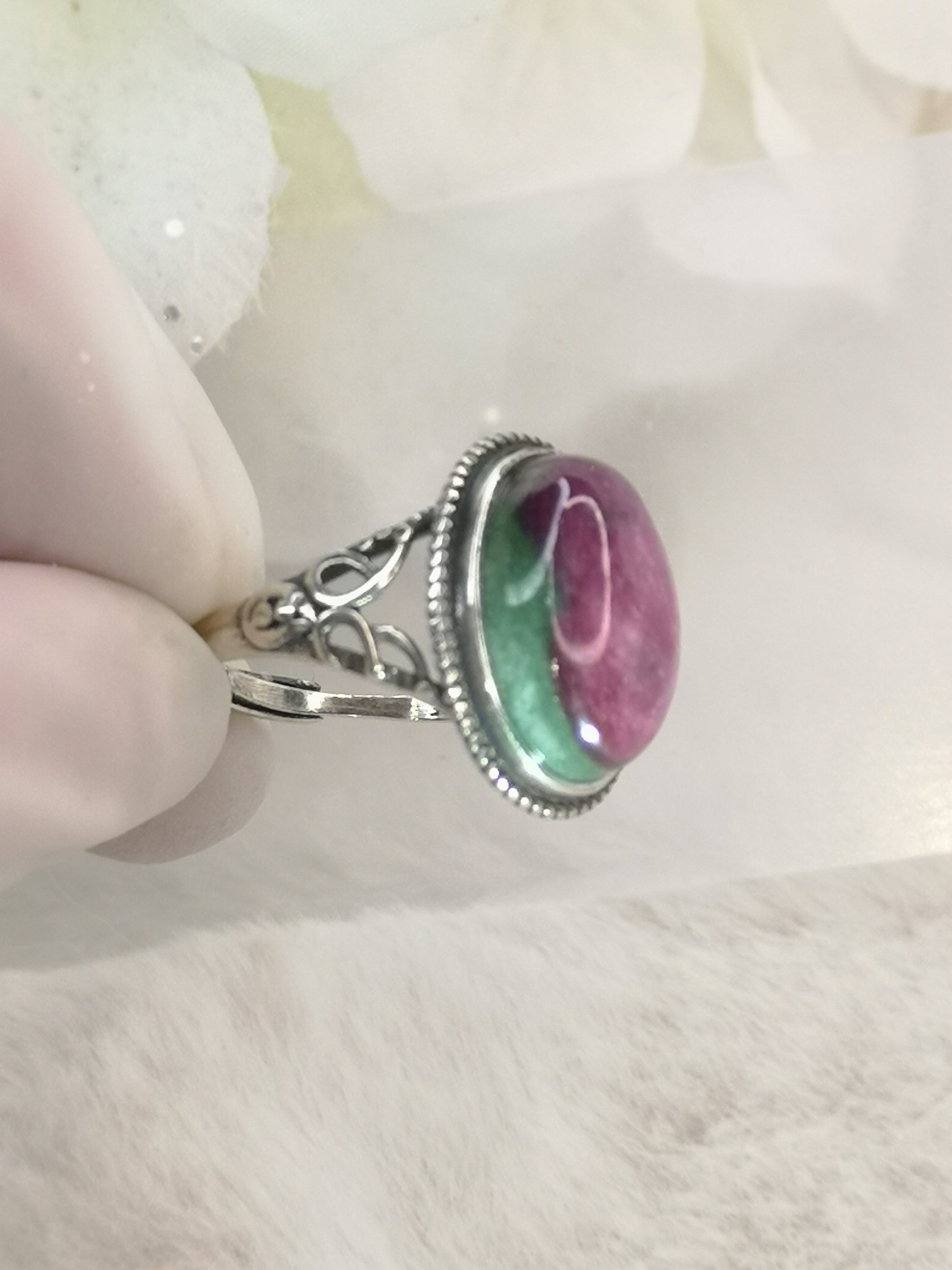 Rubin in Kyanite 925 Silber Ring verstellbar Edelstein Schmuck
