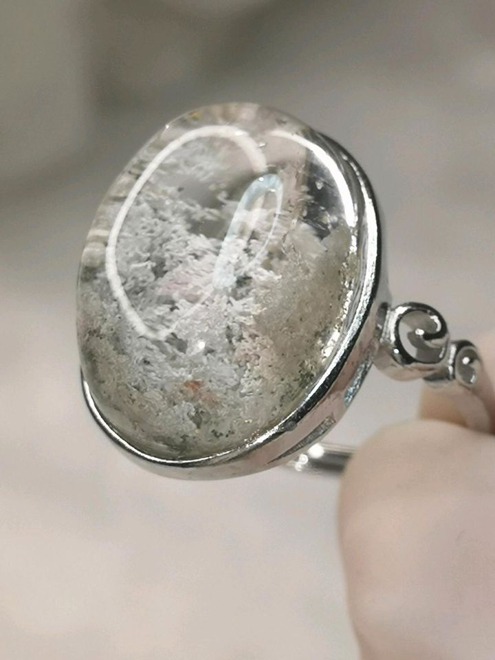 Weisser Gartenquarz 925 Silber Ring verstellbar