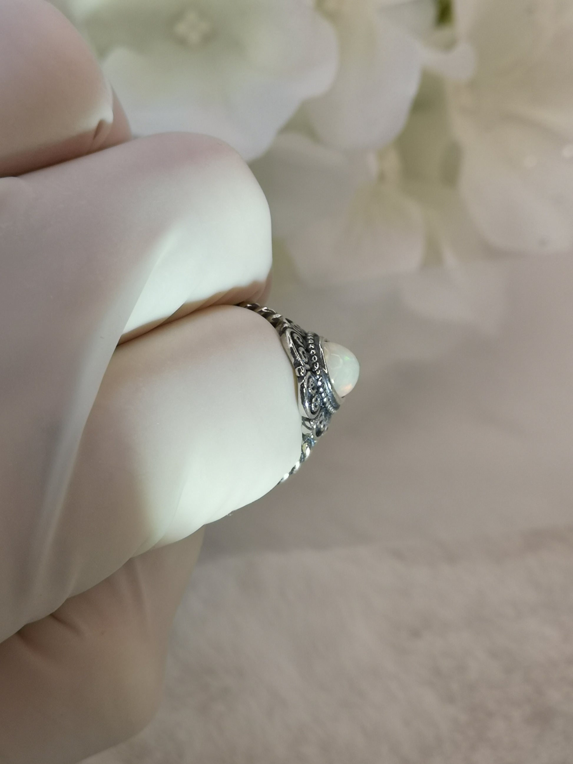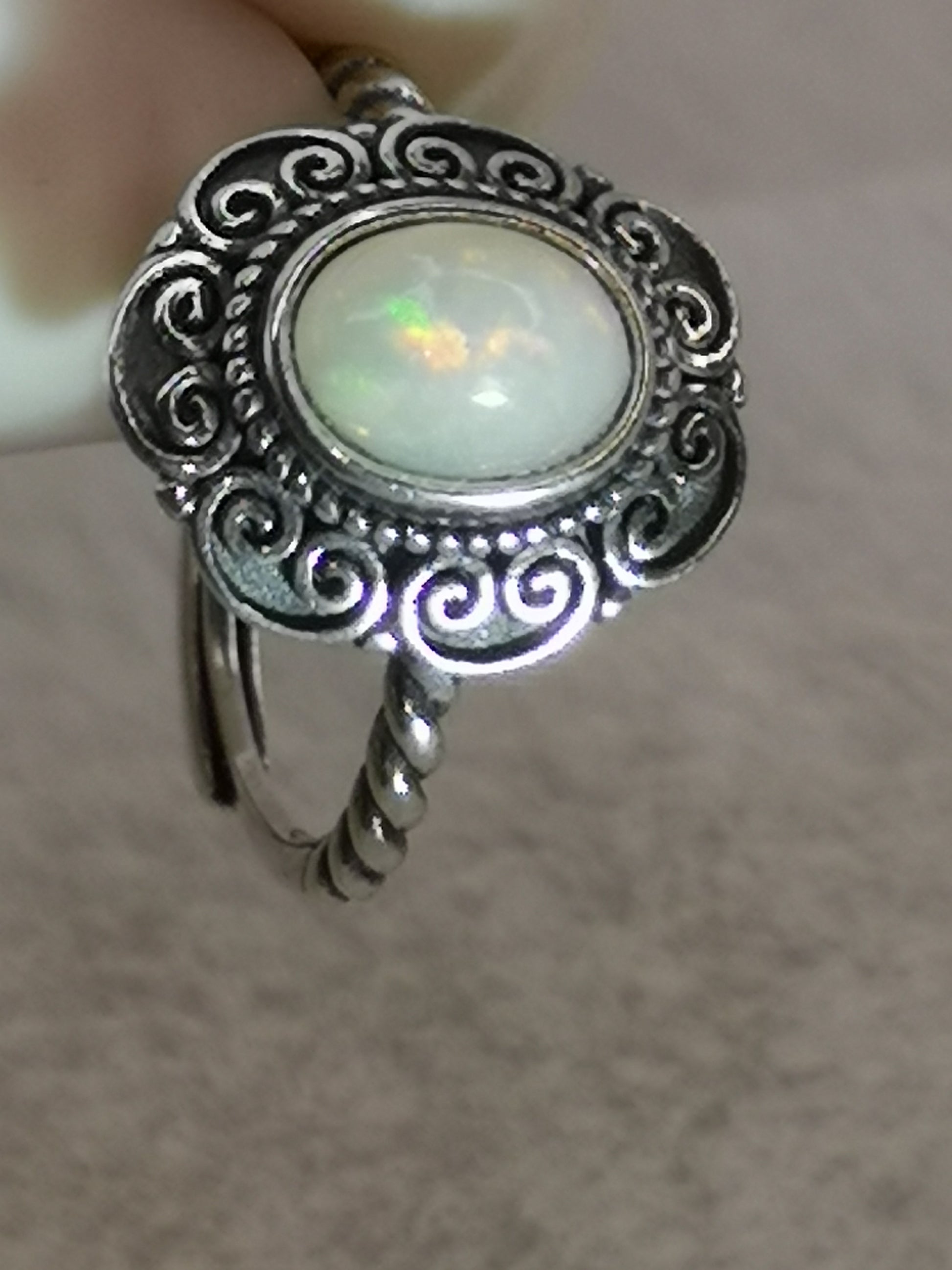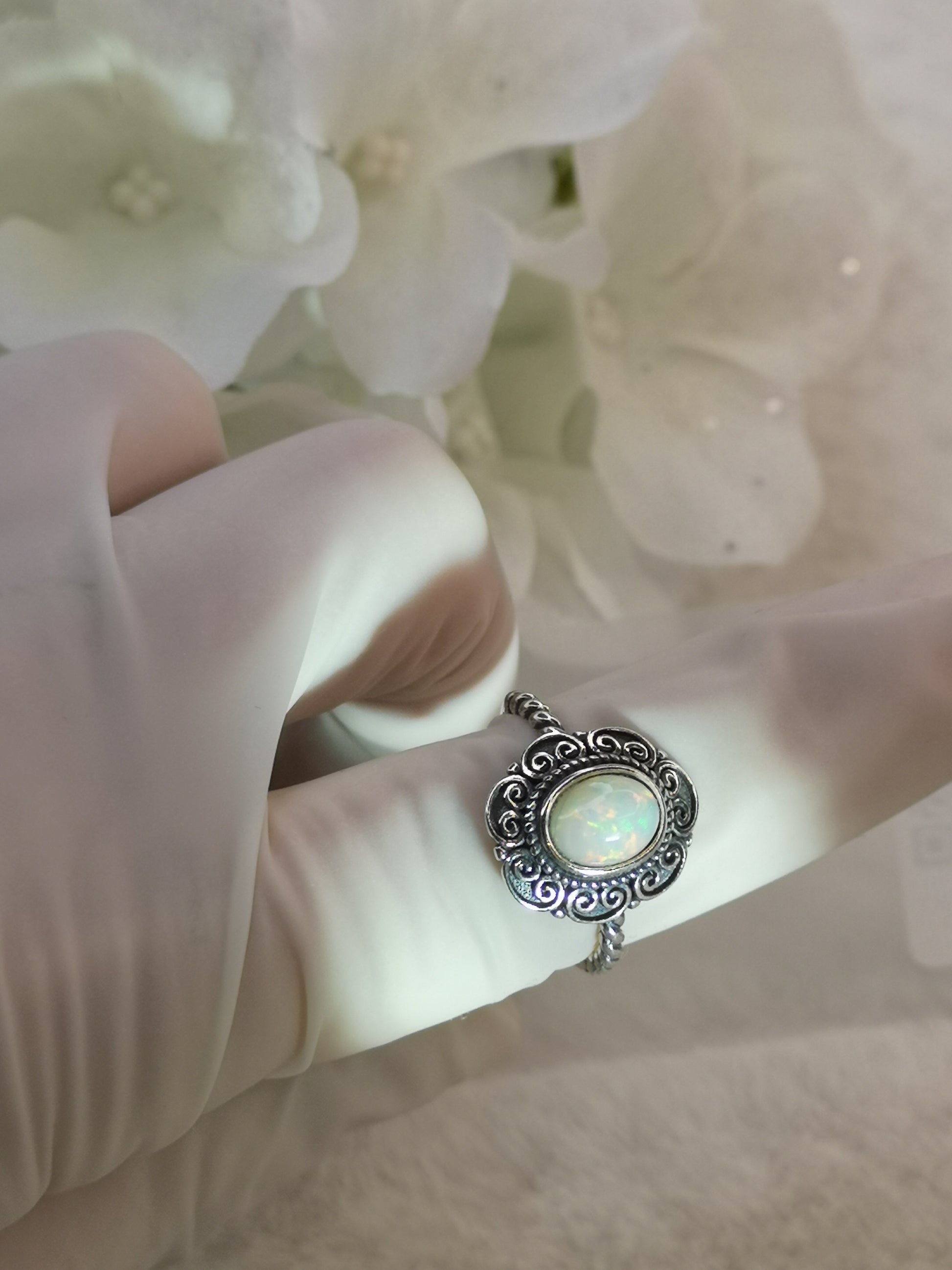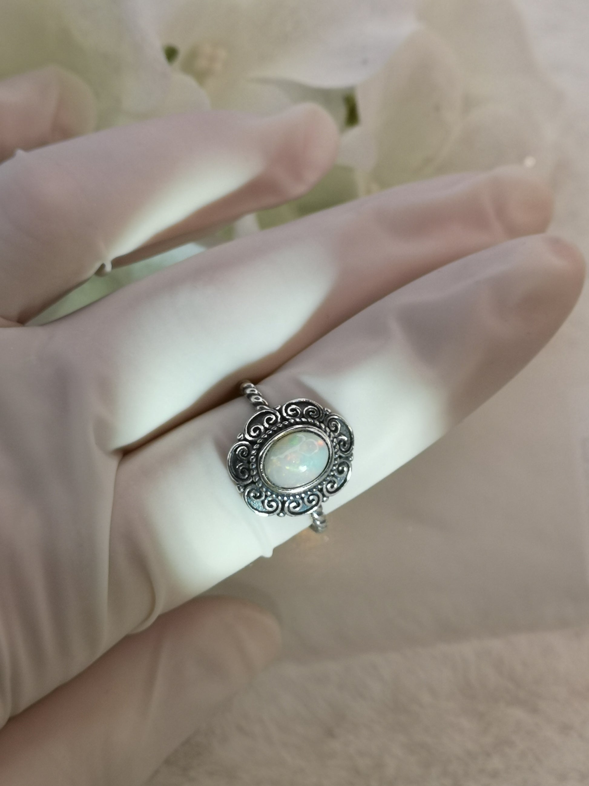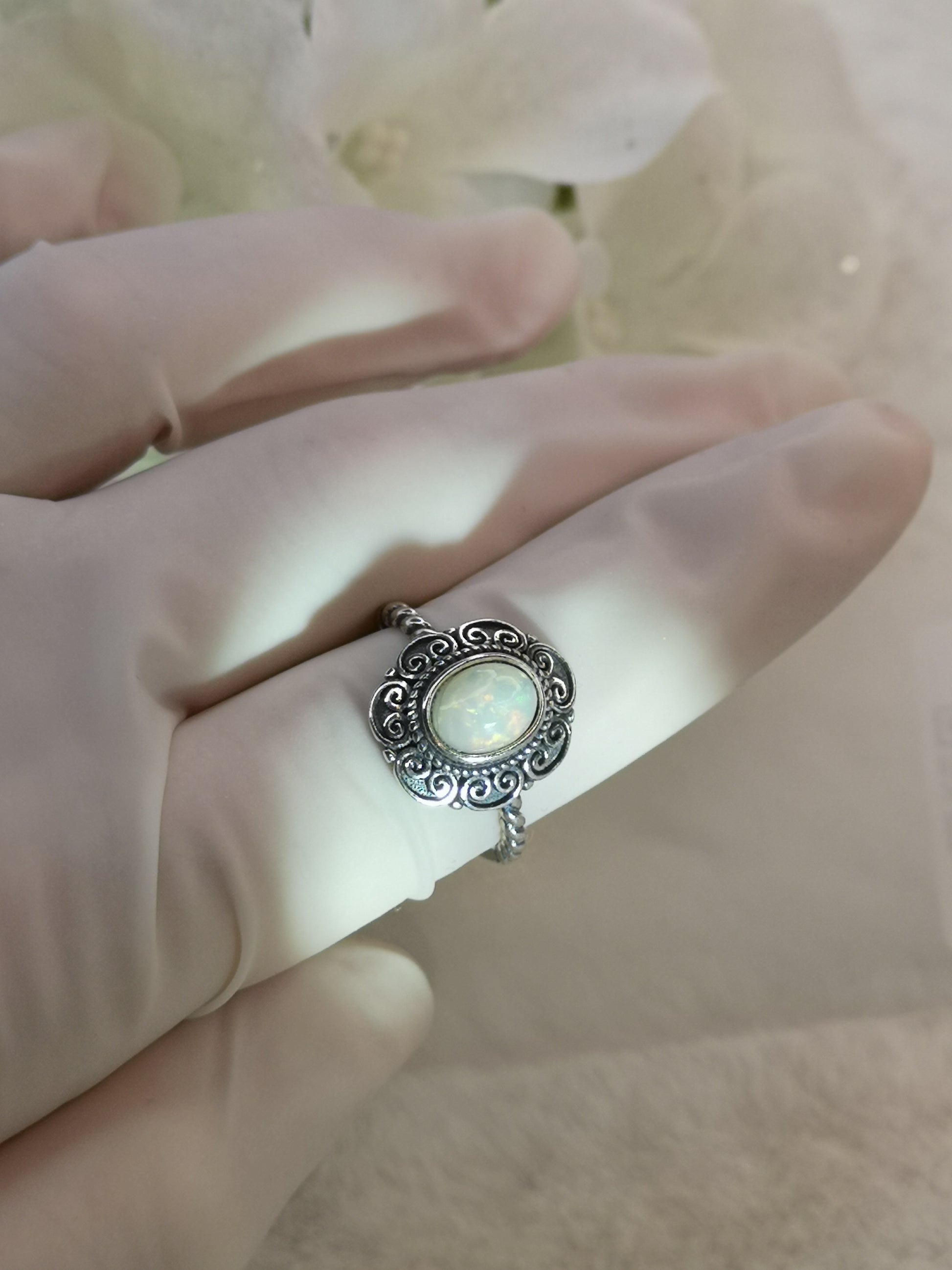 White Opal 925 Silber Ring verstellbar Edelstein Schmuck